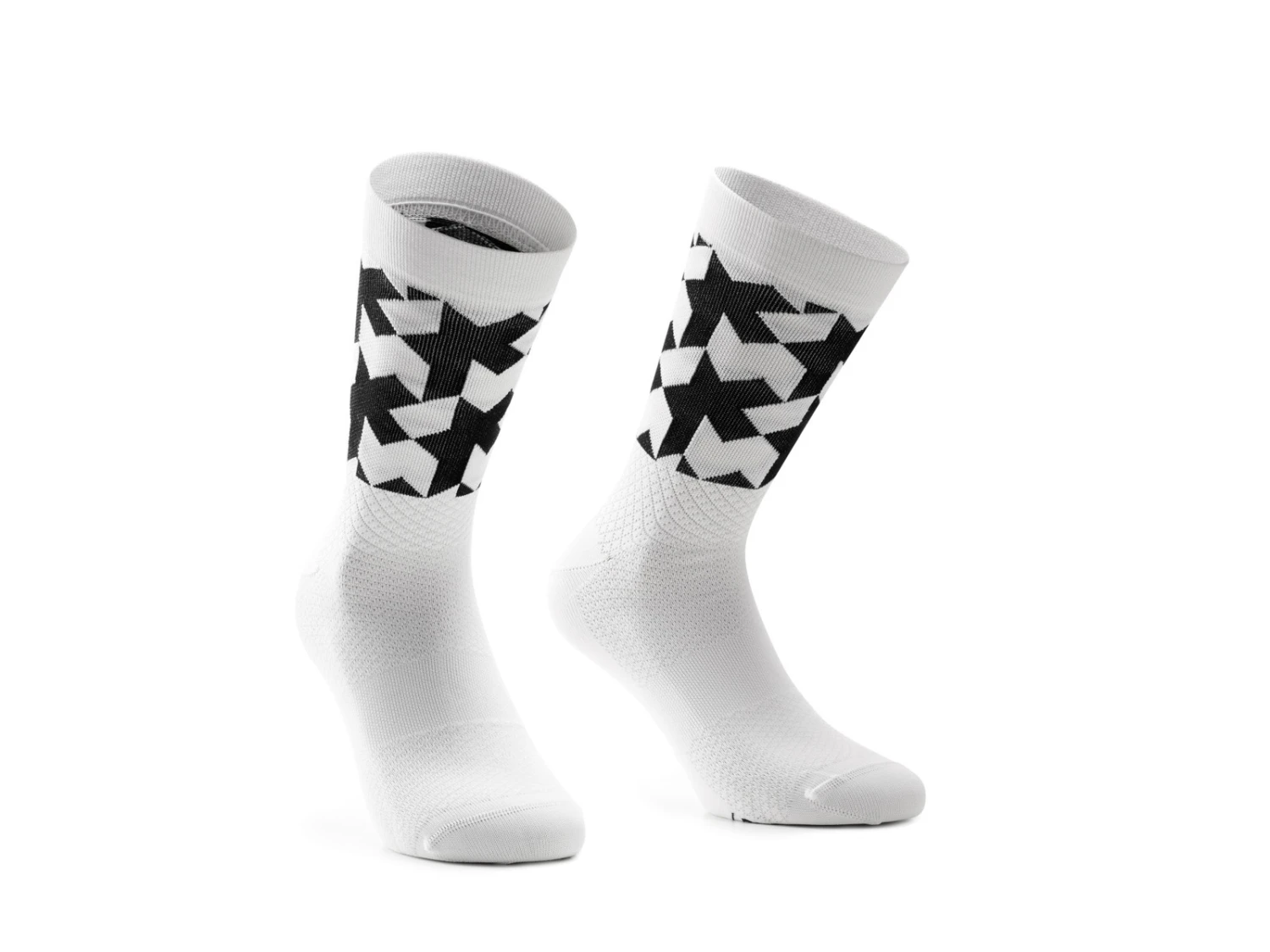 Dessa Monogram EVO strumpor från Assos är en klassisk lättviktsstrumpa med ett grafiskt uttryck, sammansatt av Assos logotyper.