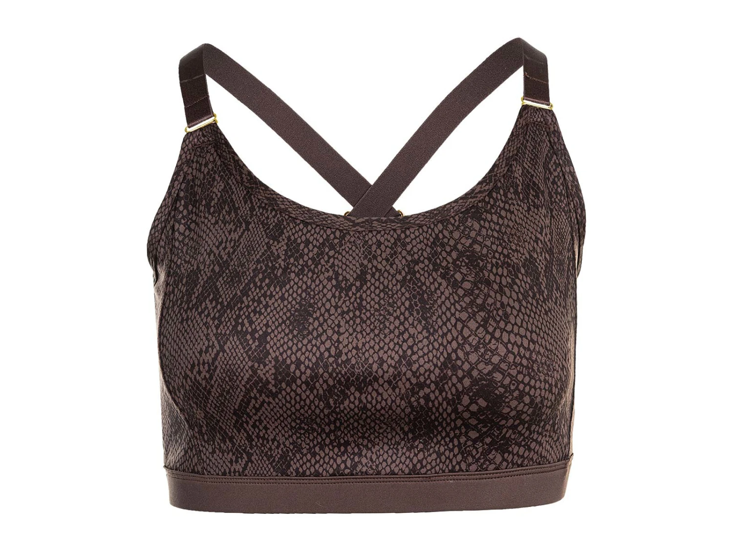 Med ett exotiskt all-over ormtryck får detta sportstopp ett uttryck som också kommer att kunna stå ensam med ett par strumpbyxor. Modellen är gjord i andningsbart och svetttransporterande dubbelskiktstyg, vilket ger bra stöd. De justerbara axelremmarna och de nedre remmarna ger god komfort, där du undviker irritation och obehag.