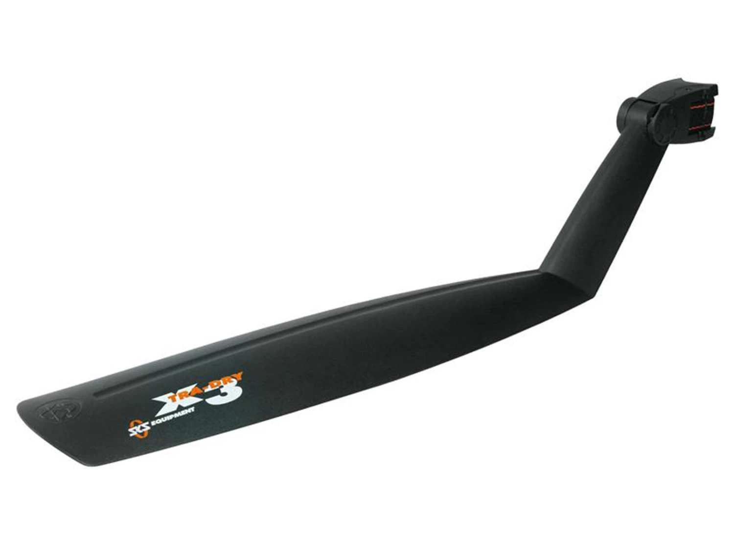 Robust kvalitets-bakskärm för montering på sadelpinne. Monteras utan verktyg. Passar på de flesta MTB-cyklar. Sadelpinnen ska vara minst 10 cm uppe, för optimal justering av skärmen.