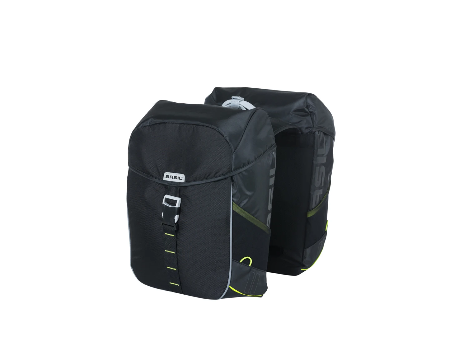 Denna dubbla cykelväska från Basil är praktisk och har en sportig design. Väskan rymmer upp till 34 l, så att du enkelt kan handla eller ta med dig på din cykelsemester. Cykelväskan är vattentät och har ett solid innerfoder samtidigt som den är tålig.