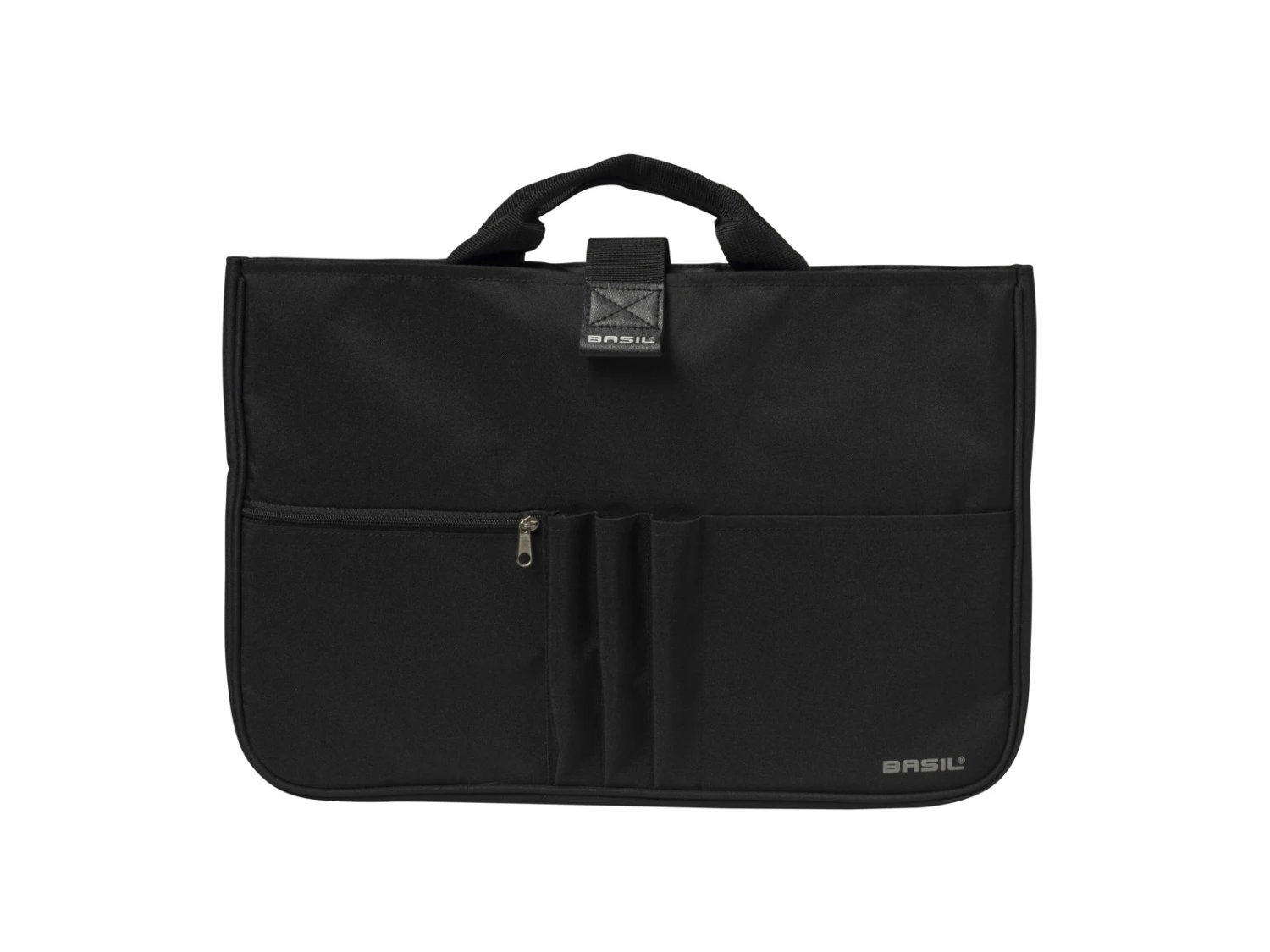 Denna Basil Organizer är designad för att bära din iPad, surfplatta eller bärbara dator och rymmer upp till 15,6 ”. Väskan innehåller ett huvudfack inuti och har en stor nätficka på baksidan, som kan användas för att förvara f. På påsens framsida är en liten ficka med dragkedja samt plats för förvaring av 3 pennor.