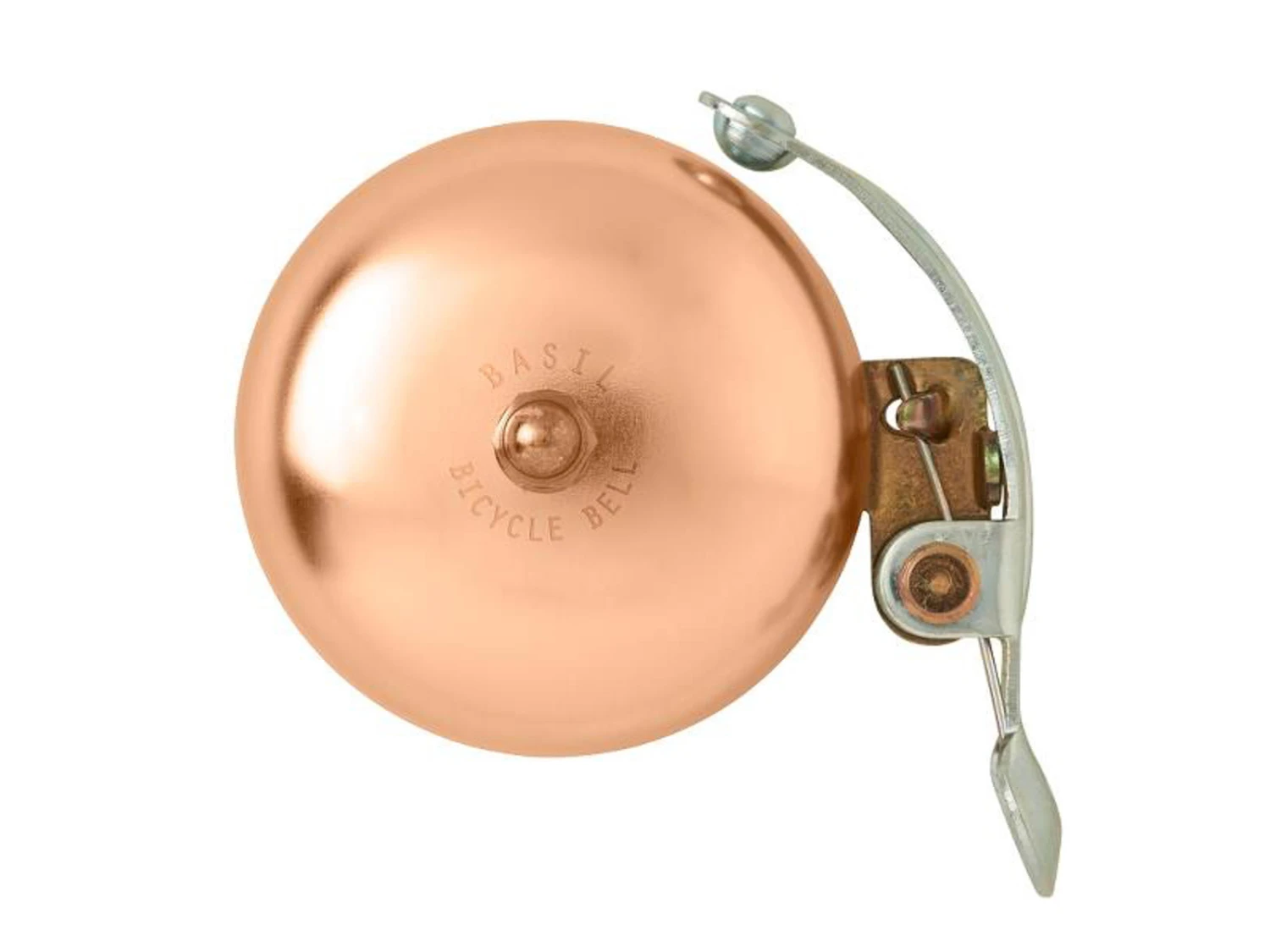 Med en kopparfärgad ringklocka från Basil kan du köra stilmedvetet och med en genomtänkt design. Denna ringklocka passar till alla citybikes eller shoppingbikes och ger den coolaste retro-looken på cykelstigen. Toppen av ringklockan är framställt i koppar.