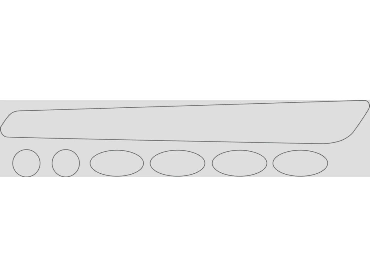 - Folien består av 1 lång bit för bakramen 27 x 3 cm, 2 små runda bitar med 2 cm i diameter och 4 ovala bitar av 2 x 4 cm