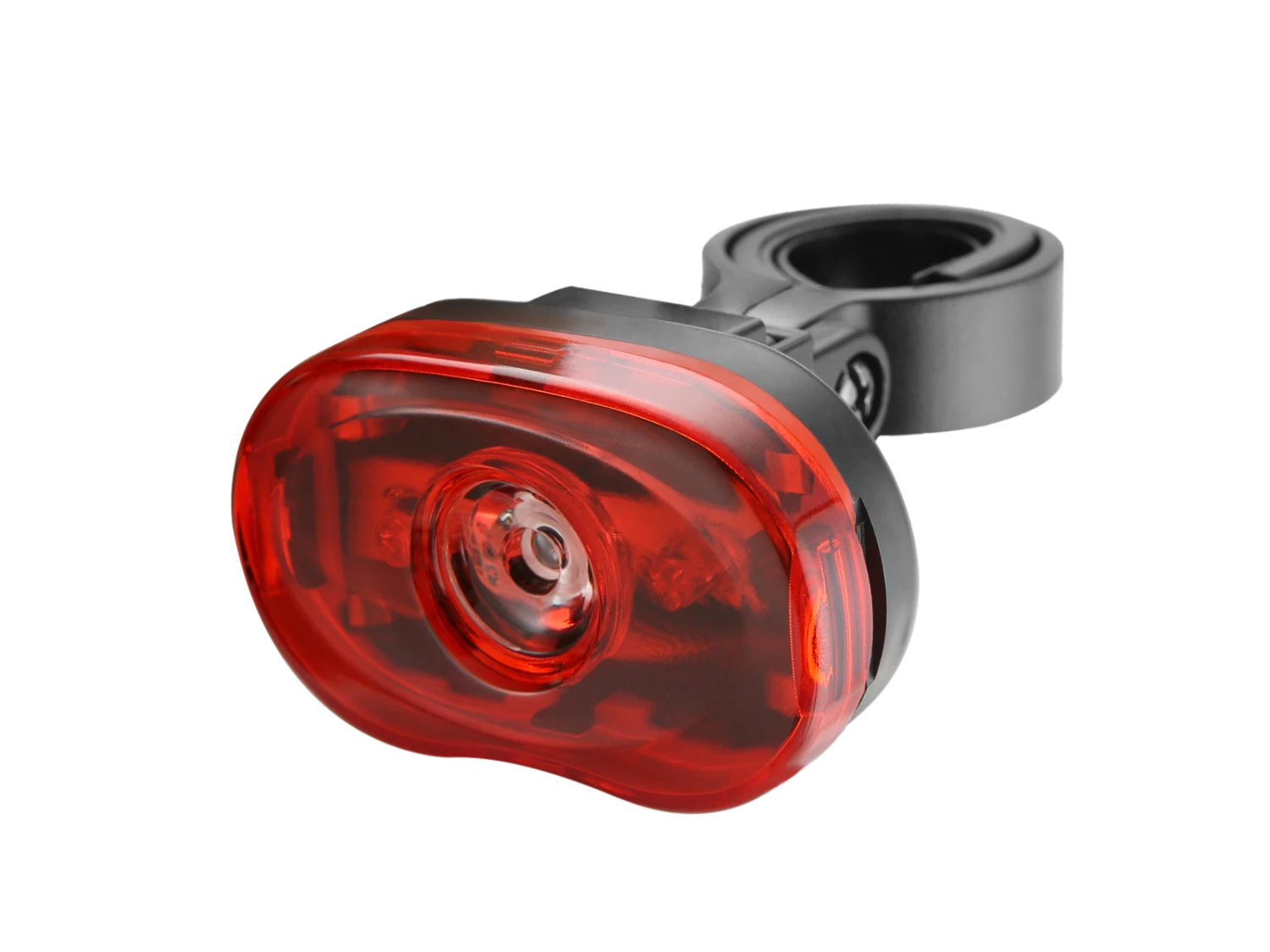 Bakljus från Bike Attitude med 3 lysdioder. Lampan tänds med 2,5 lumen och passar sadelstolpar Ø25,4-31,8 mm. 2xAA-batterier ingår.