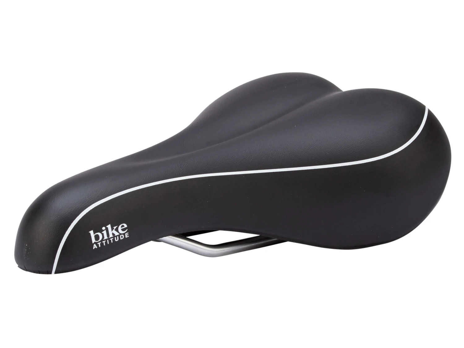 Bike Attitude-cykelsadeln tillgodoser både män och kvinnor. Formen på sadeln är lämplig för cyklister som vill ha en super bra komfort, men som samtidigt vill behålla den sportiga looken på cykeln. Sadelpolstret är med gel, vilket ger en riktigt bra stötdämpning. Den övre och nedre delen av sätet är avslutat med en hård plastdel på undersidan, vilket säkerställer att de två delarna hålls ihop, vilket ger en perfekt finish.
