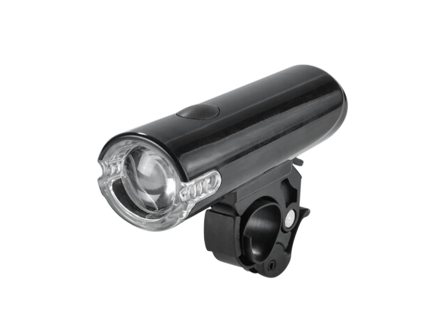 Strålkastare från Bike Attitude med 1 LED-diod. Lampan tänds med 40 lumen och passar styret Ø22,2-25,4 mm. 3xAAA-batterier ingår.