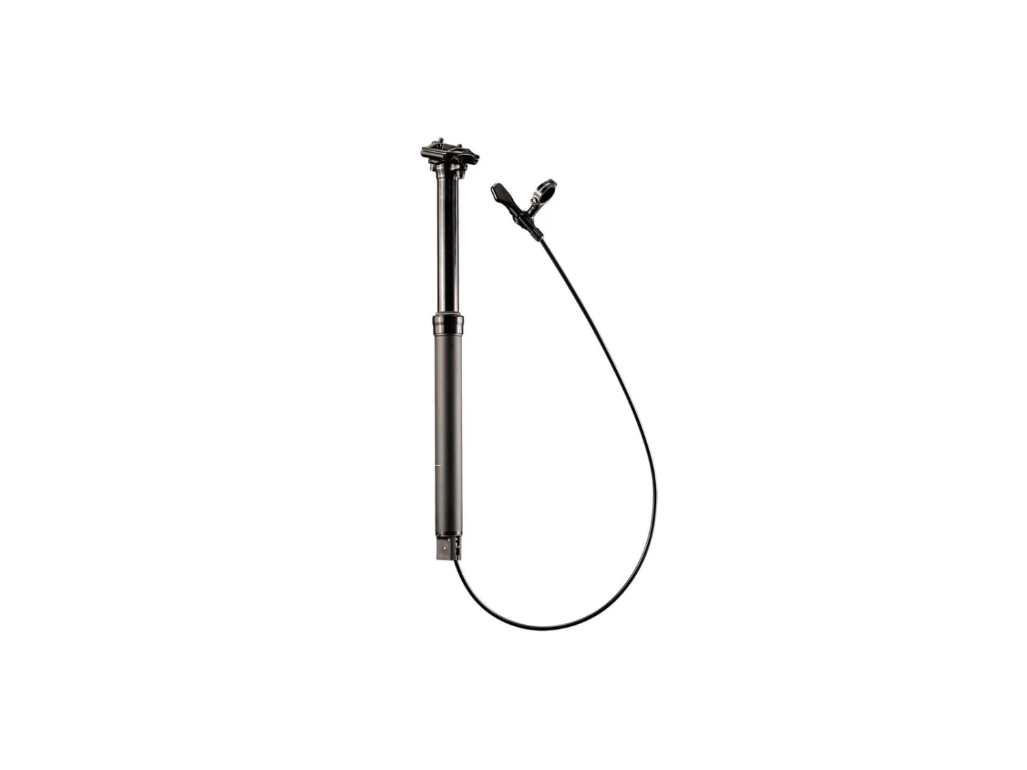 Denna Bontrager ’Line’ droppstolpe är kabelstyrd och en hydraulisk luftpatron gör att du steglöst kan justera färden.