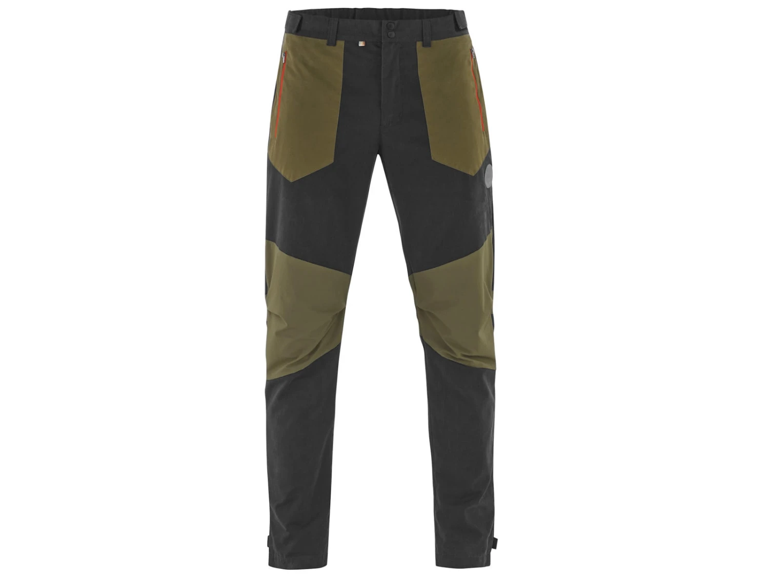 Dessa vandringsbyxor är gjorda för äventyr i vildmarken. Det vindtäta materialet har fått en ytbehandling som gör vandringsbyxorna vattenavvisande. Knäpanelerna är sydda i form, vilket ger extra utrymme för rörelse. Handfickorna på sidorna är stora och med dragkedja och vid anklarna går det att justera storleken med tryckknappar. Allt som allt en modell som är späckad med praktiska detaljer.