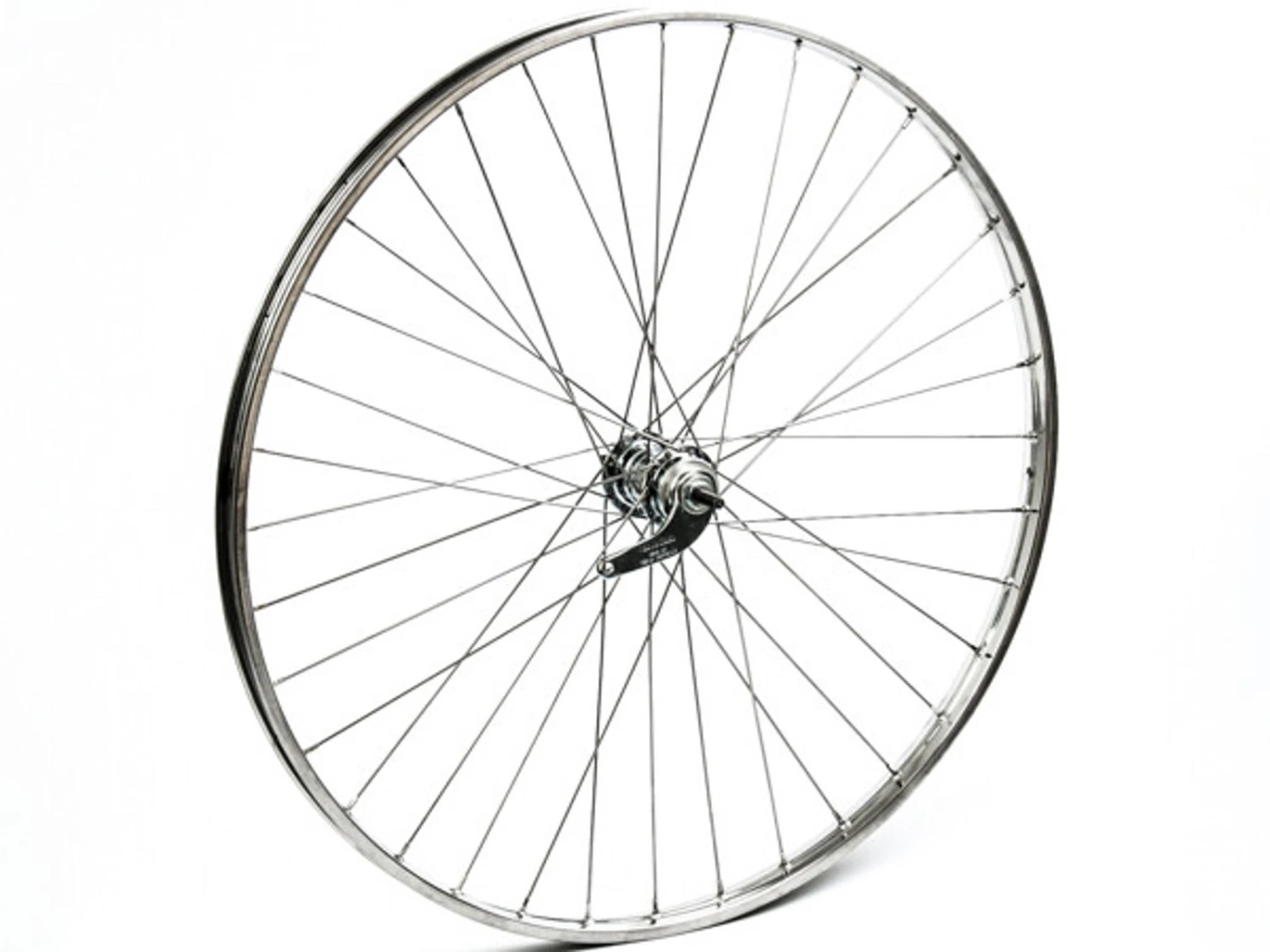 Detta hjul har en stark kant av rostfritt stål och extra starka 2,33 mm tjocka ekrar. Denna fälg tillverkas enligt gamla principer, vilket kan betyda att det finns rester av stål vid fälgen. Hjulet levereras utan kugghjul och fälldäck.