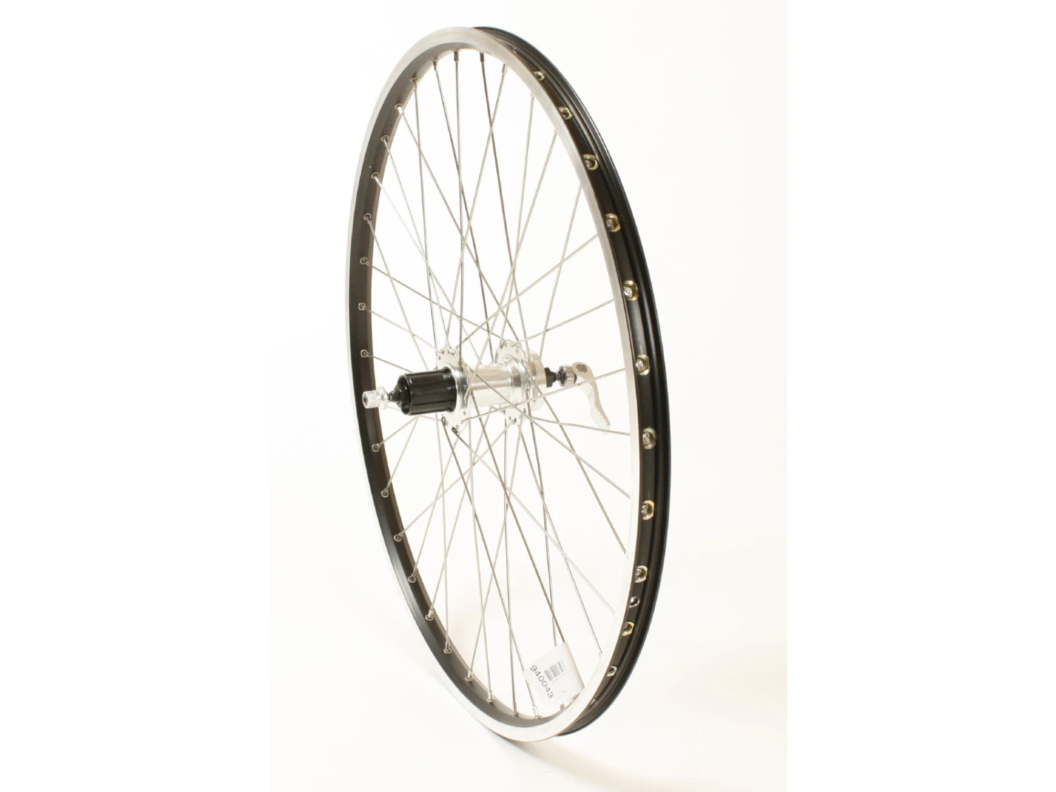 Bakhjul 26” MTB till Diskbromsar eller V-bromsar. Svart aluminiumfälg och nav med quickrelease.