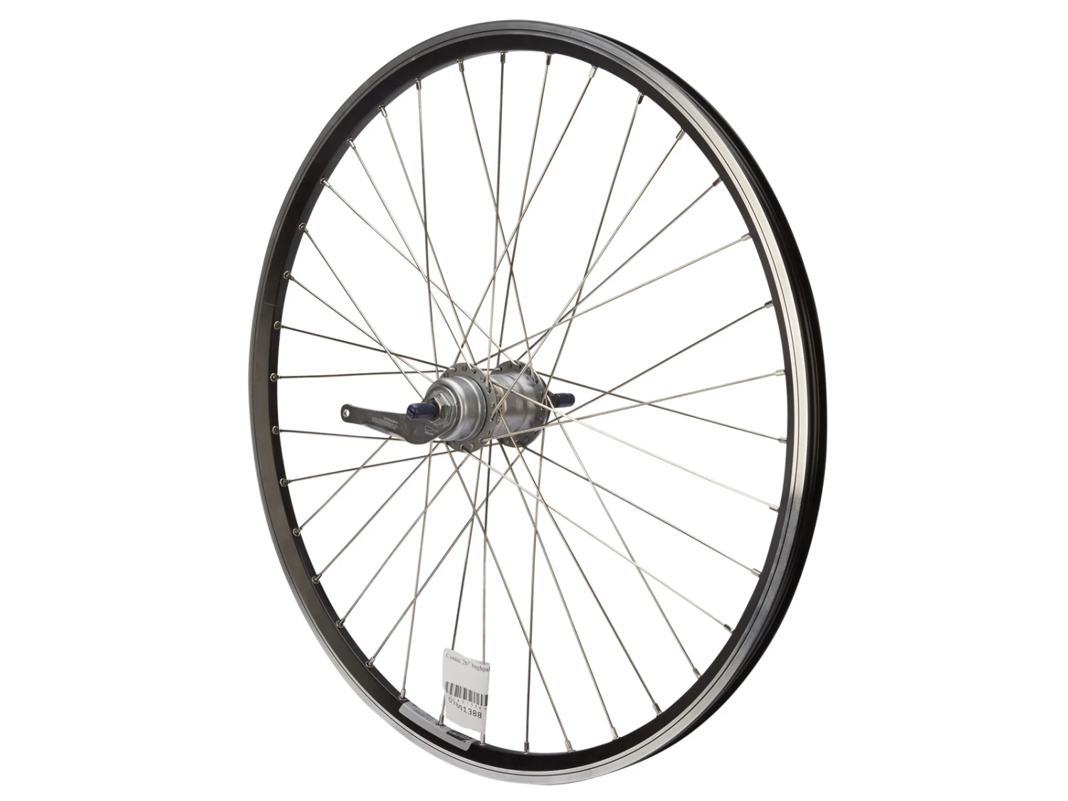 - Bakhjul med aluminiumfelg och nippelförstärkning – Fotbroms