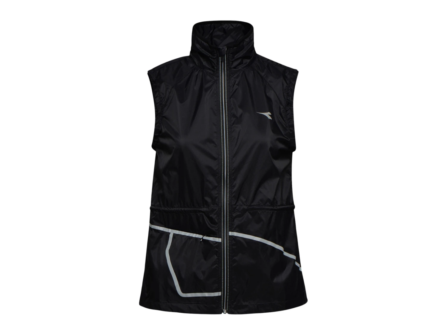L. West från Diadora är tillverkad av kvalitetsmaterial som gör löpningsvästen vindtät och vattentät. Det finns fina små detaljer som reflekterande tryck så att du kan se i mörkret och det svettbärande ämnet som håller huden torr.