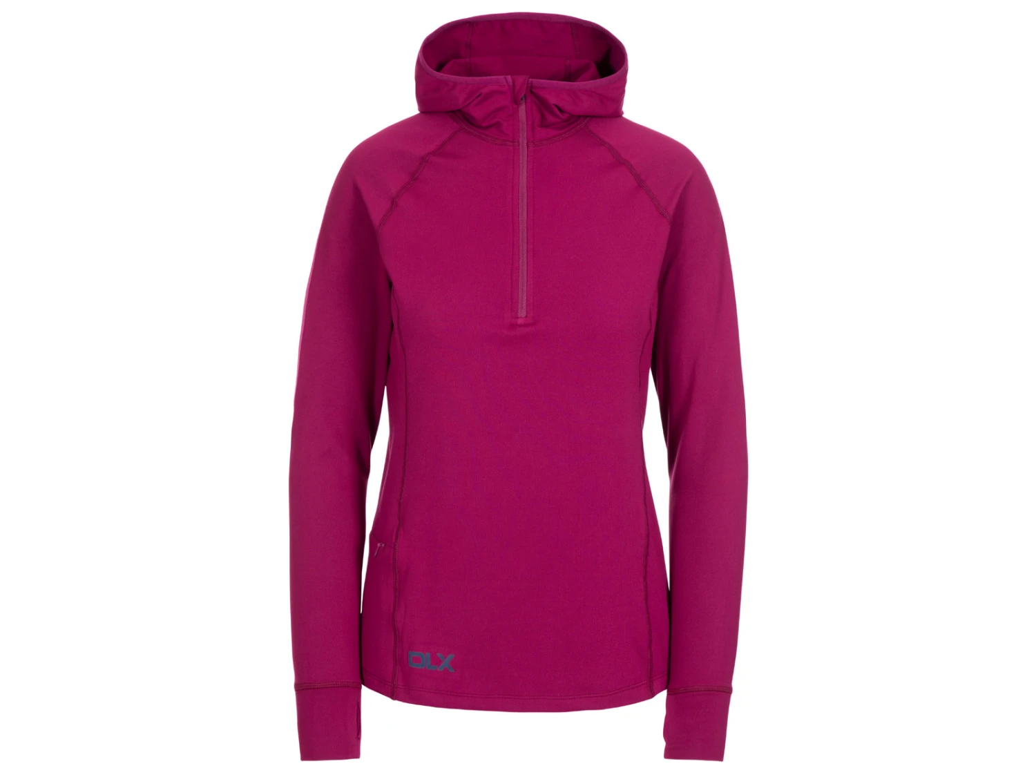 Denna Rebecca-luvtröja från DLX är särskilt lämplig för träning eftersom den är både snabbtorkande och fukttransporterande. Detta innebär att all fukt och svett släpps ut i tygets yttersta skikt, där det snabbt avdunstar. Eftersom skjortan är gjord med plana sömmar, kommer du att uppleva en stor komfort under användning. Som en extra twist är logotypen och dragkedjan i en fin rosa kontrastfärg.