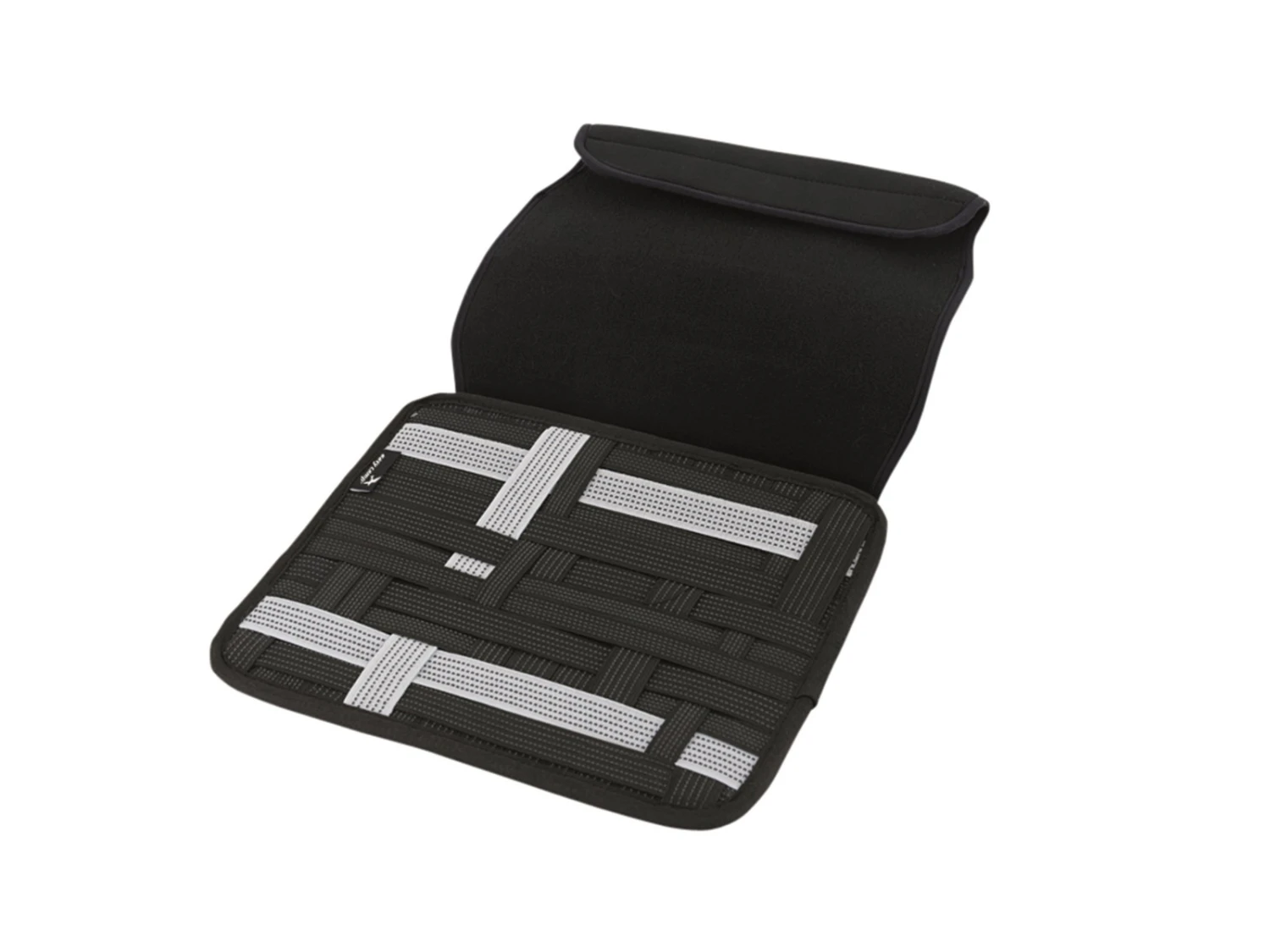 Easy Camp har här gjort en superpraktisk arrangör för utrustning som smartphones och annan elektronik. Det finns oändliga konfigurationer eftersom de är vävda med elastiska så att du kan fästa mycket olika.