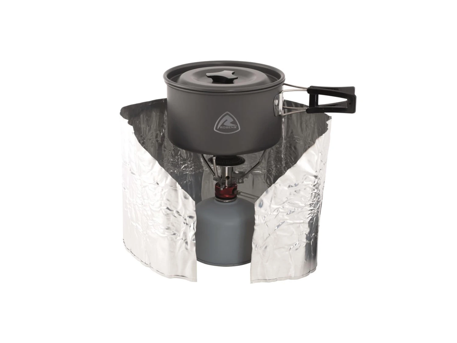 Den lättvikta aluminiumskärmen används runt din matlagningssats för att ge skydd runt brännaren du kan använda. Materialet gör det enkelt att arbeta med, även med handskar på.