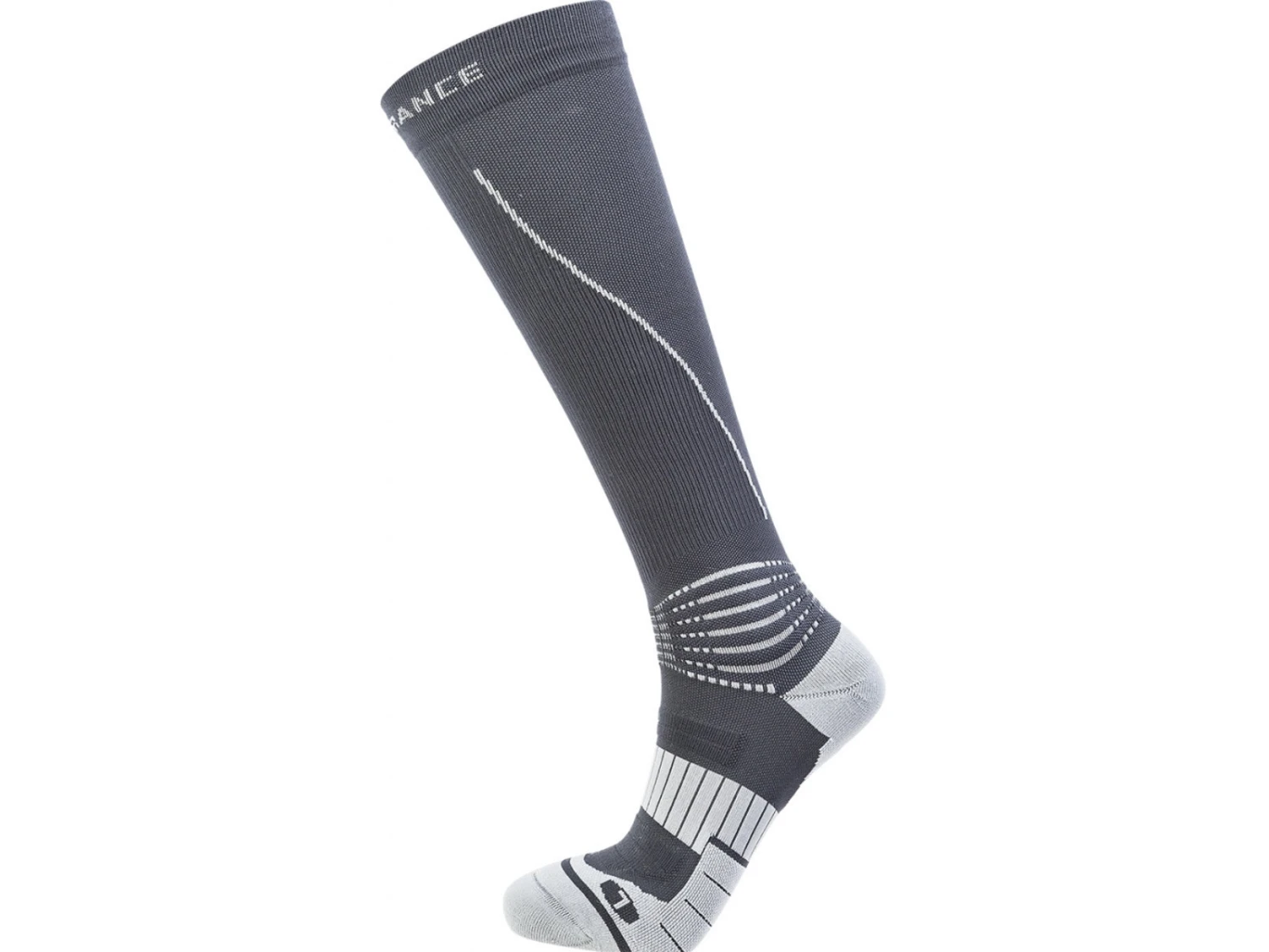 Kompressionsstrumpor ökar blodflödet, minskar muskeltrötthet och snabbare återhämtning. Dessa löparstrumpor är gjorda av ett andningsbart och svetttransporterande material, och är ergonomiskt anpassade för resp. höger och vänster fot. De platta sömmarna vid tårna ger god komfort och minskar irritation.