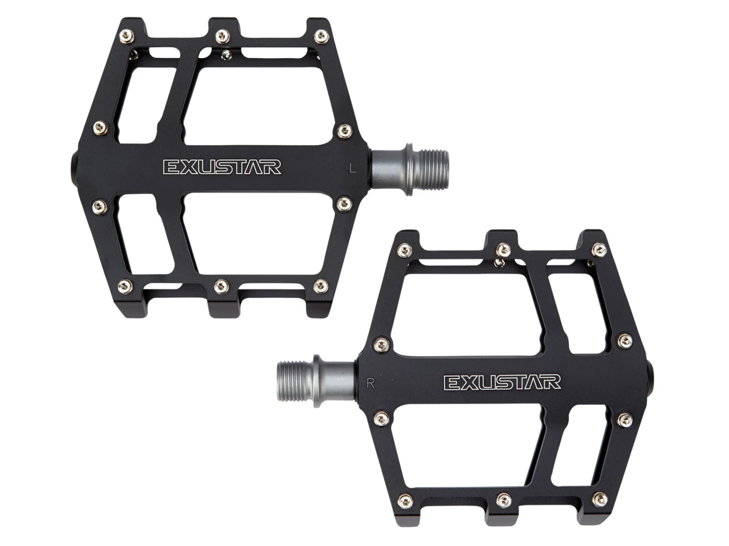 Dessa Exustar-plattformspedaler är inriktade på både BMX, MTB och Freeride. Pedalerna har 10 stift på varje sida, vilket säkerställer att foten inte glider över pedalen under användning och ger en verklig känsla av kontroll. Dessutom tillverkas pedalens kropp i ett stycke CNC-slipat 6061 aluminiumlegering, som är anodiserat och med utbytbara stift. Pedalaxeln är tillverkad av värmebehandlat CNC-slipat krom, molybdenstål med stängda och förseglade lager, vilket minimerar friktionen.
