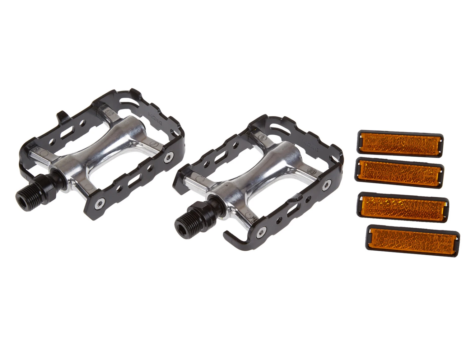 Exustar lätt aluminiumkroppspedal och CNC-slipat stålaxel med LSL-bussningar, som är självsmörjande och ger minimal motstånd under rotation. Pedalerna har tätade stållager. Tåklämmor kan tas på. Reflektioner ingår. Detta ger en mycket funktionell cykelpedal till din stadscykel, som därmed kan optimeras för din körning med sina stängda lager och Cr-Mo-axel.