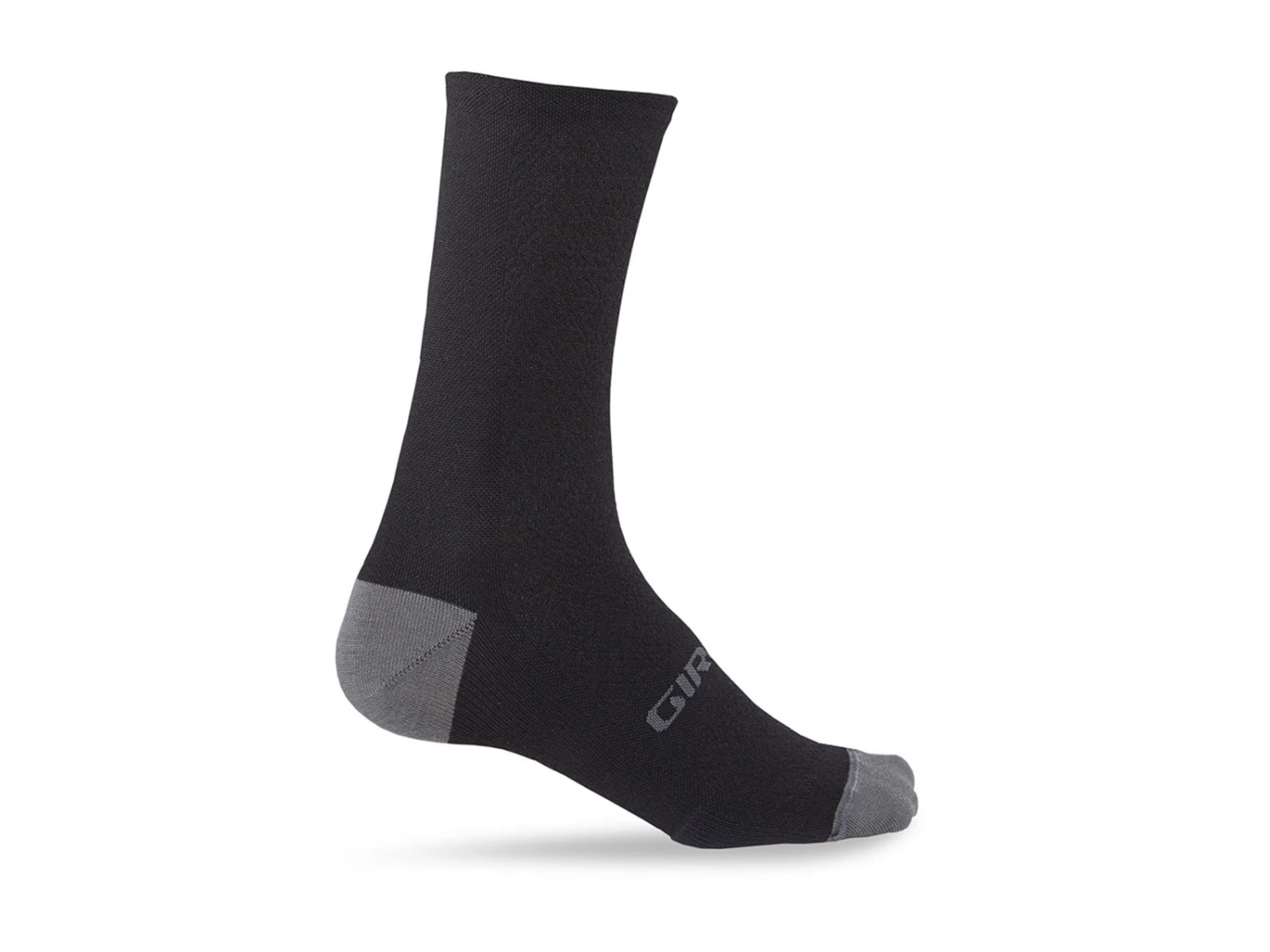 Denna HRc-strumpa från Giro är av Merinoull och älskas av användare som kräver god komfort och stöd. Strumpan är designad i Meryl Merino ull som ger en mjuk känsla och en god värme för körning i svalt väder. Strumpens utformning ger ökad blodcirkulation och bättre stöd. Den extra förstärkta hälen förbättrar strumporna. Manschettens höjd är ca. 17,5 cm, vilket ger god värme en bra sträcka av benet.