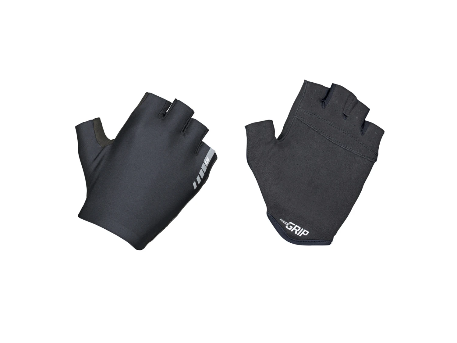 Ultralätt cykelhandske i en elastisk polyester- och polyamidtyg med inre grepp, reflekterande detaljer och slip-in manschett.