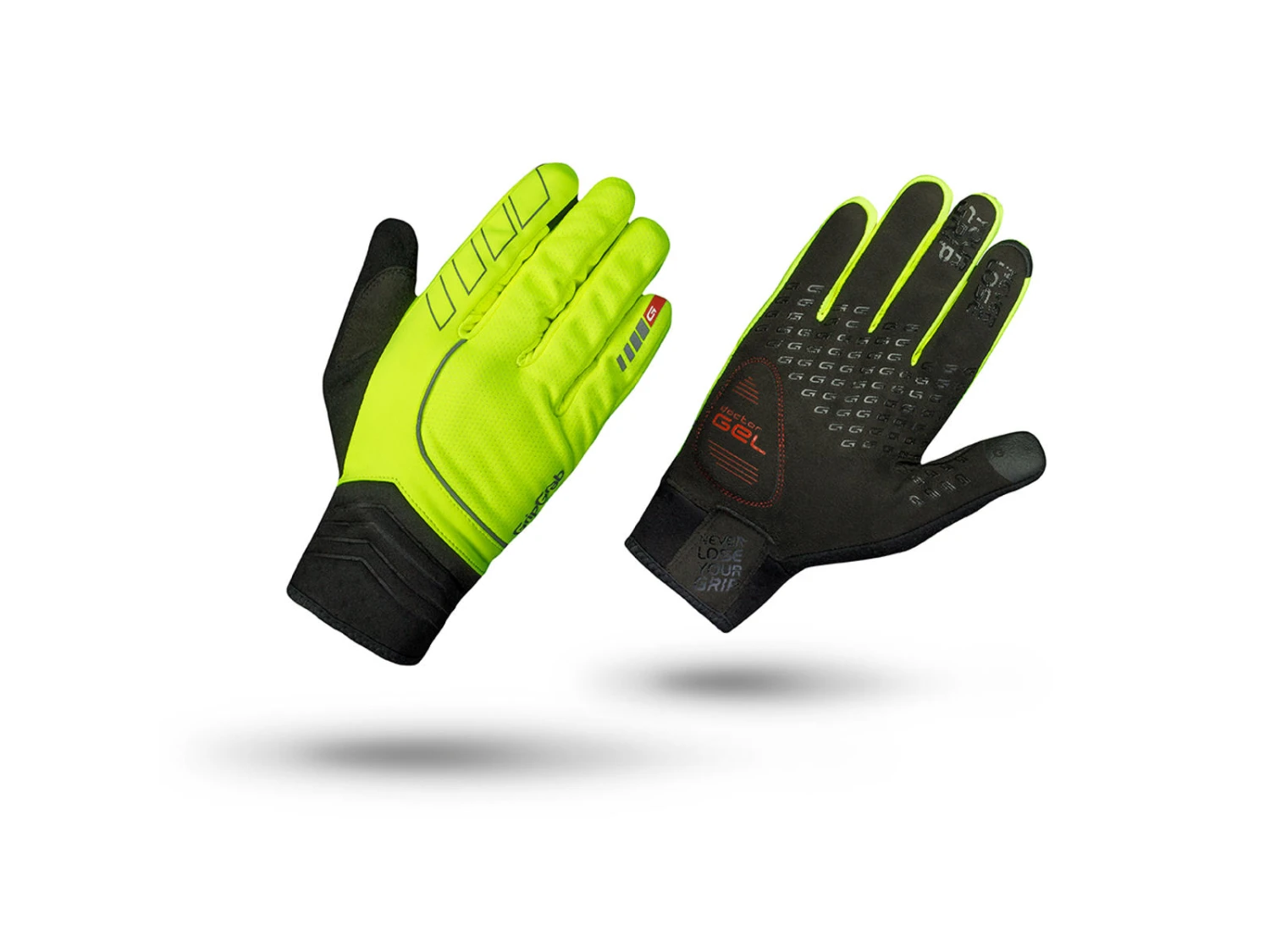 Med denna neongula GripGrab-handske så får du en handske av mycket bra kvalitet. Handskens ökar din synlighet i trafiken och ger dig också möjligheten att använda din smartphone utan att ta av dig handsken. Detta beror på det smarta tyget med silikongrepp som handsken är producerad med. Dessutom är Hurricane-handsken både vind- och vattentät. På tummen finns det ett stycke tyg som du kan torka av svetten i pannan med. Materialen är i toppkvalitet och andas, så du slipper fuktiga och för varma händer. GripGrab-handsken har även reflexer på handryggen.