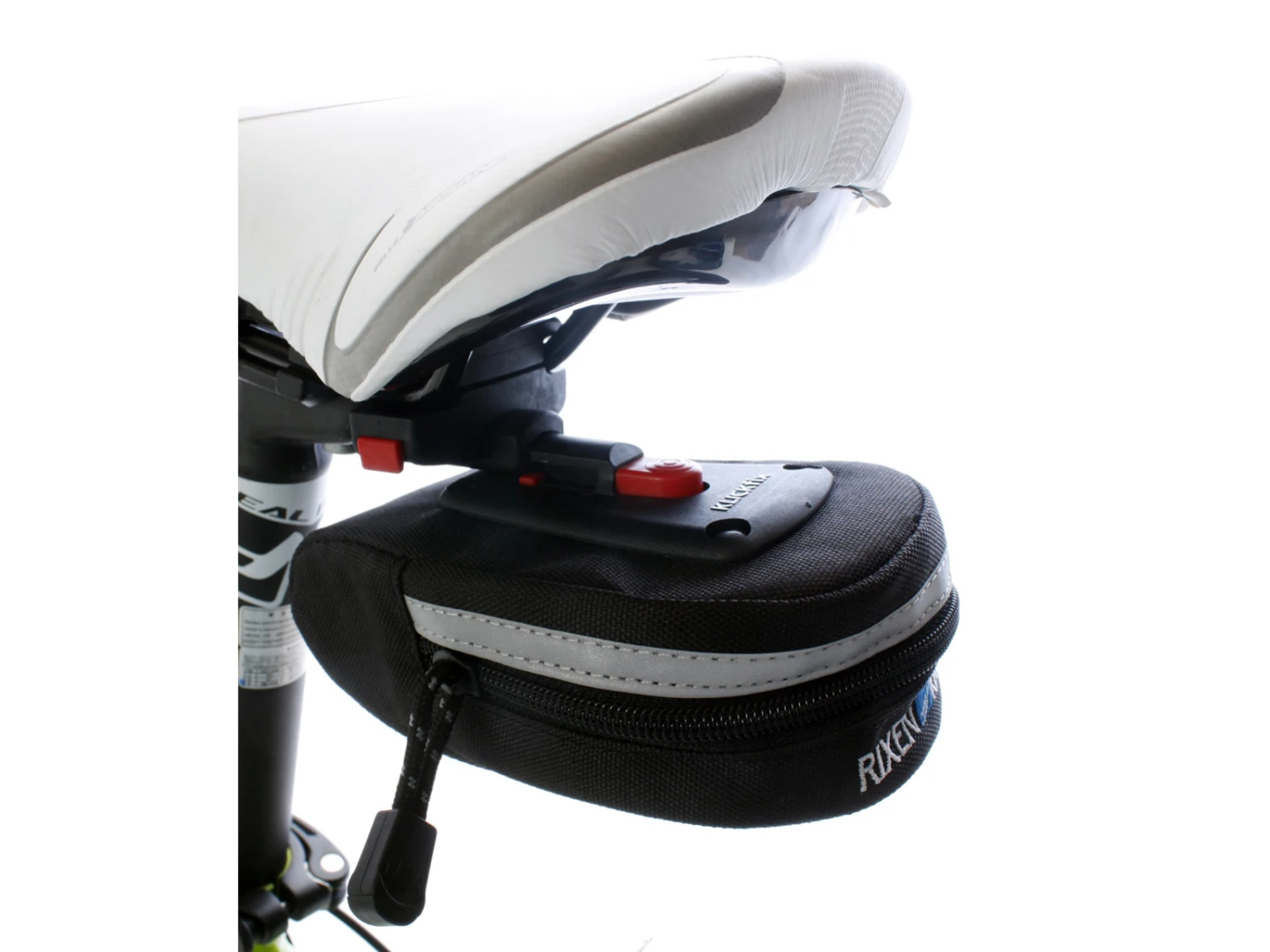 Klickfix sadelväska är framställd i ett slitstarkt material. Väskan har en reflexstripa längs blixtlåset, samt en reflex-logga (Rixen och Kaul-logga).