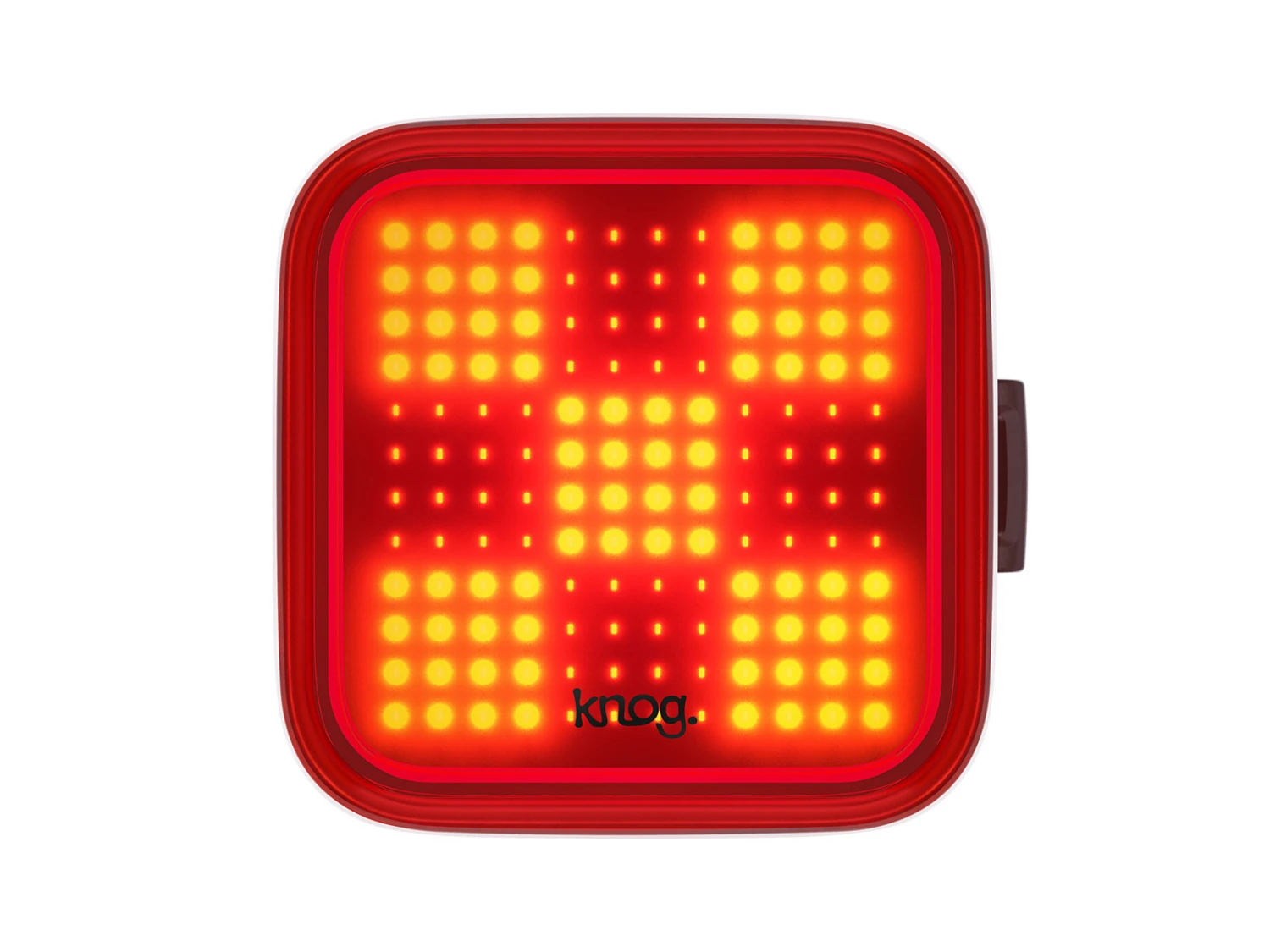 Knog har gjort en supersmart bakljus för cyklar, med 8 olika grafiska mönster. Bakljuset har 100 lumen, så att du lätt kan ses i trafiken. Dessutom har bakljuset silikonband, så det är superlätt att montera på cykeln, och cykelens ram kommer inte att repas av ljuset.