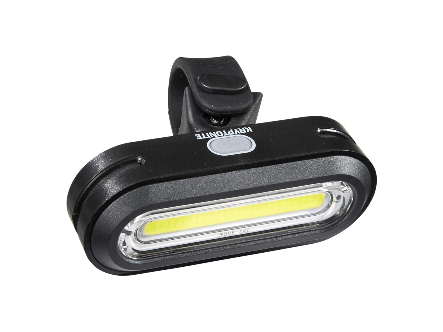 Med detta Kryptonite cykelljus får du en supersmart strålkastare med inbyggt batteri som har en bränningstid på upp till 22.30 timmar . Lampan har olika ljussteg att välja mellan och allt beror på antalet timmar din lampa kan bränna. Om ficklampan har mindre än 10% batteri byter den automatiskt till ”Ekonomisk blixt”. Dessutom har lampan en batteriindikator som lyser rött när det finns mindre än 25% batteri kvar och grönt när det är fulladdat. Lampan har sidoljus, så att du också kan se när du korsar vägen.