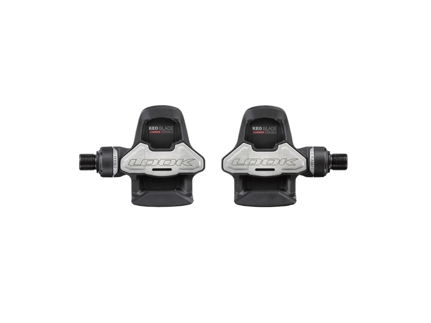 Detta pedalset från Look Keo Blade har keramiska lager och inkluderar höger och vänster pedaler, samt två klossar med motsvarande skruvar.