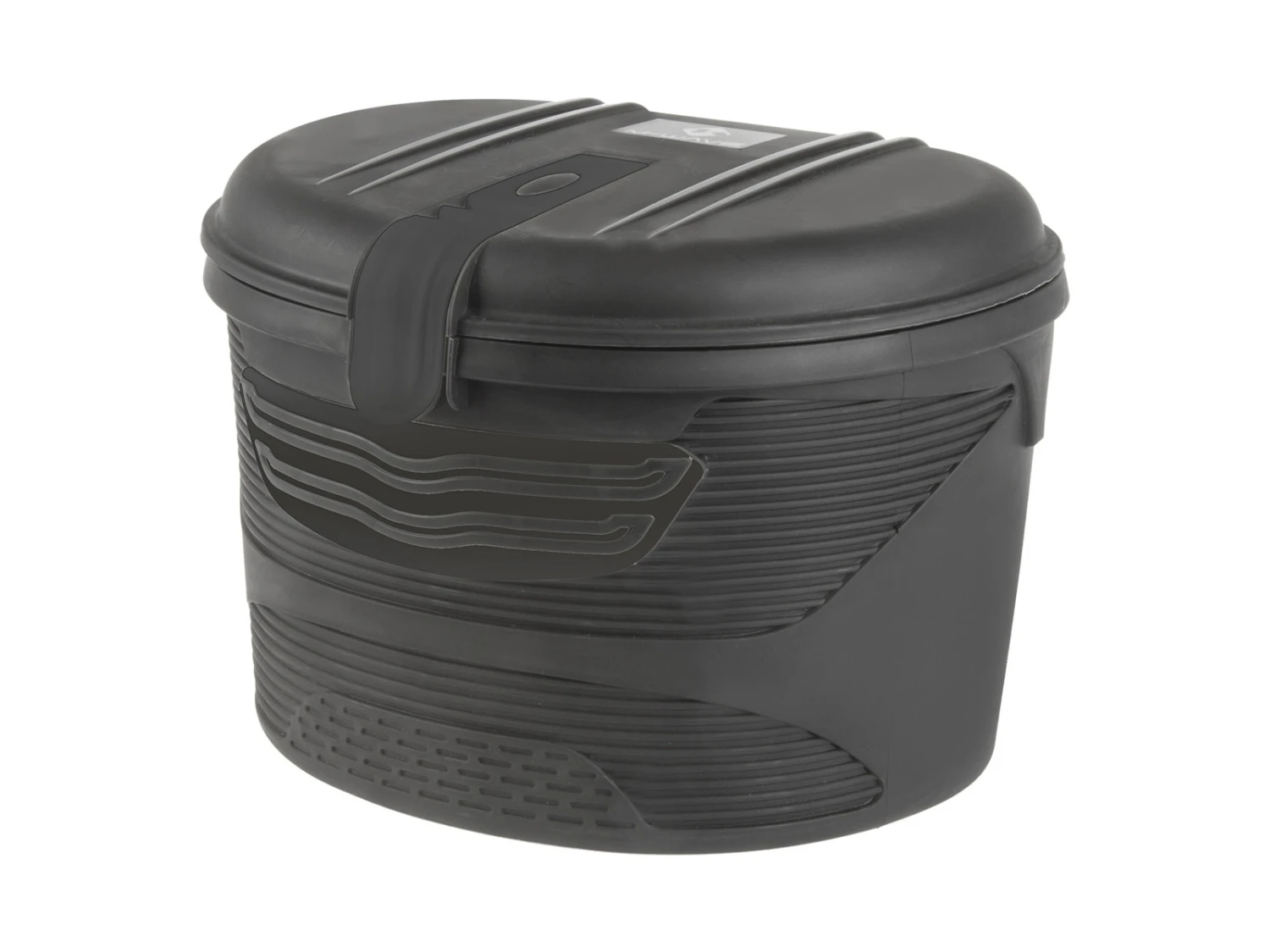 Denna smarta cykellåda måste monteras permanent på framgaffeln och passar 26 ”-29” hjul. Lådan är perfekt för förvaring av till exempel en cykelhjälm, jacka eller annat och kan låsas säkert med de medföljande nycklarna. Lådan skyddar innehållet från både damm och vatten.