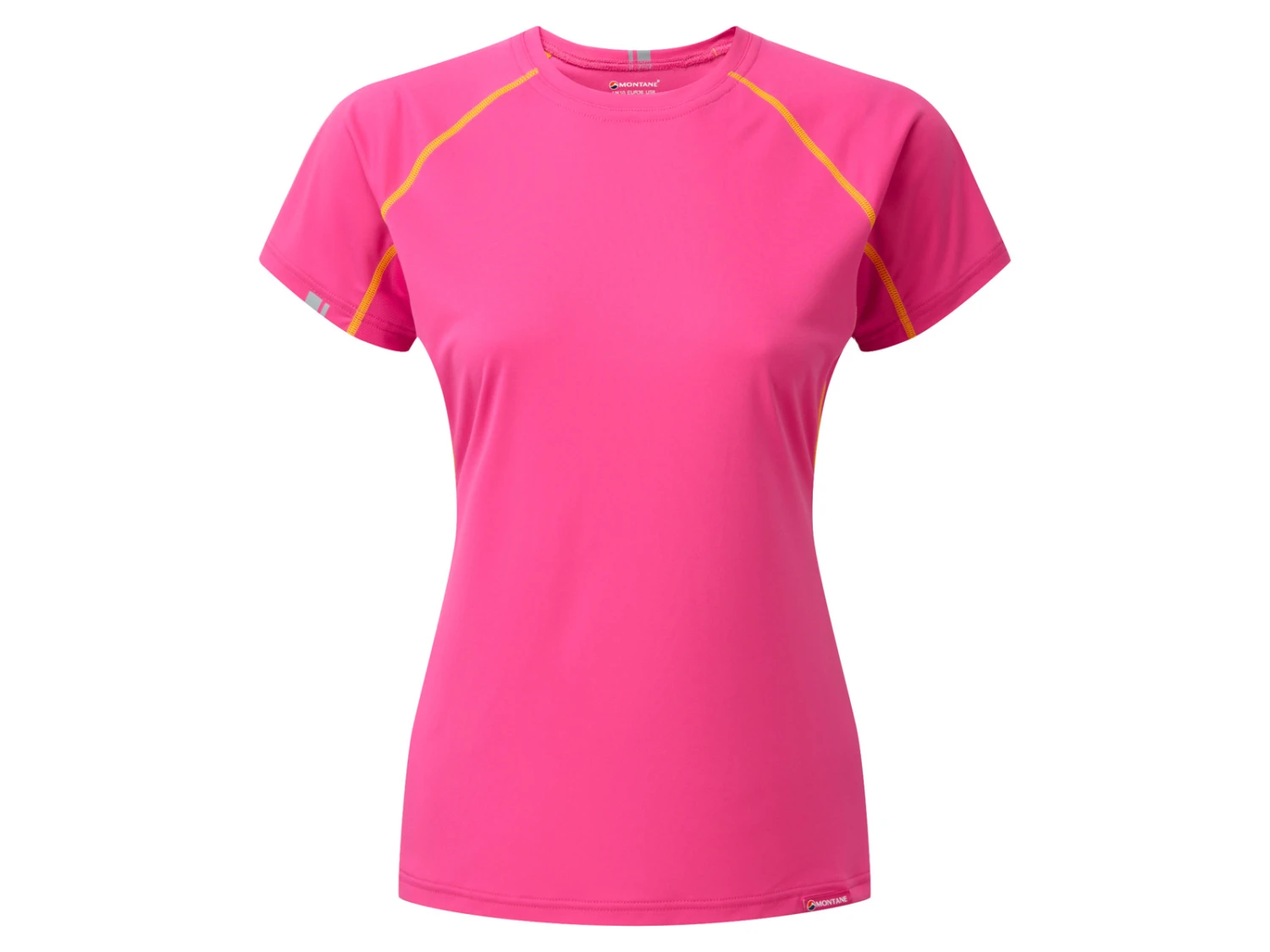 Montane Sonic T-shirt för kvinnor är ett fantastiskt baslager eftersom den är utformad för att rikta svett och fukt bort från kroppen. Därför blir du inte störd av fuktiga kläder, men kan fortsätta att prestera ditt bästa. T-skjortan kan användas som baslager i kombination med jackor eller ensam på årets heta dagar.