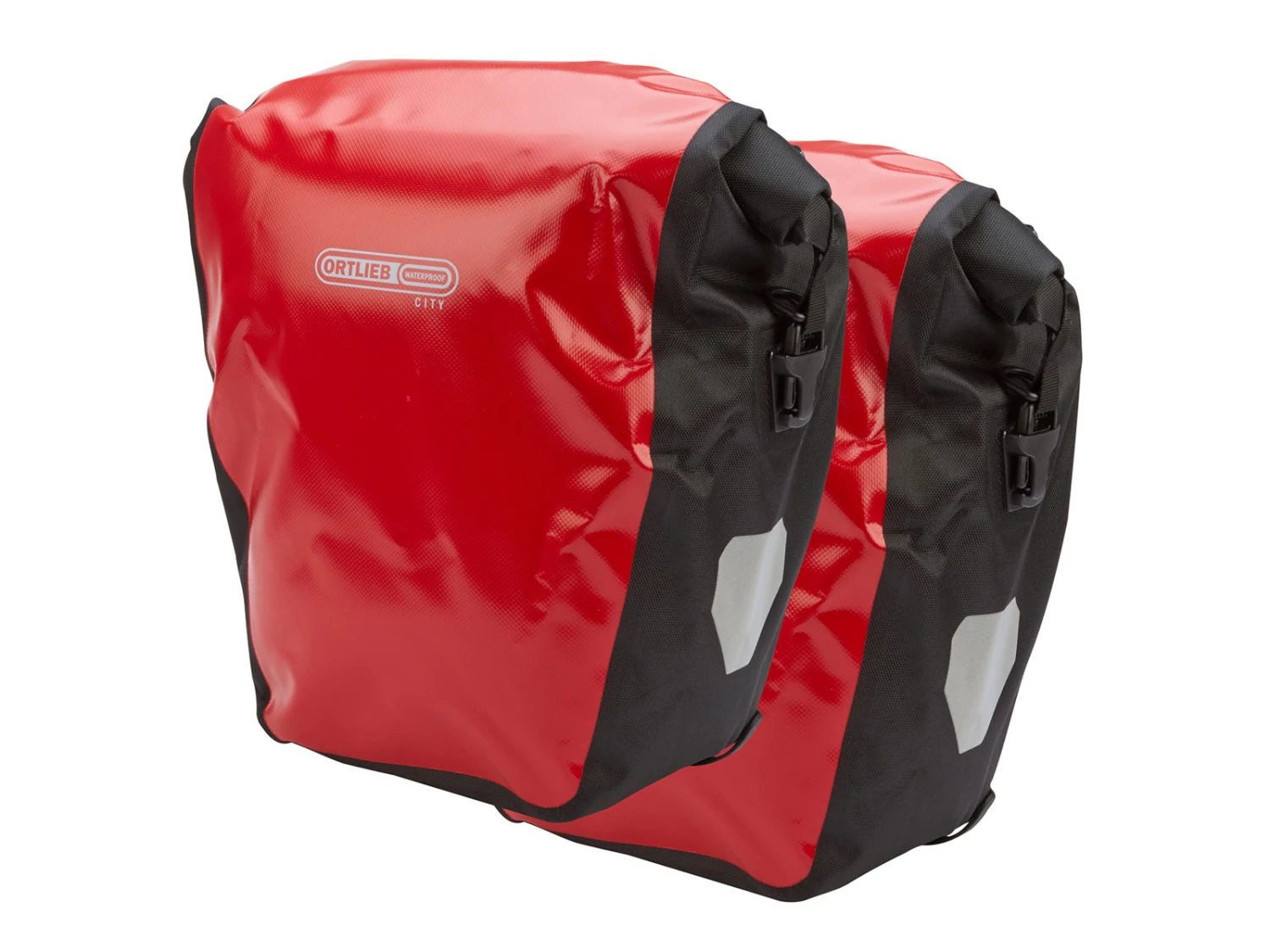 Denna Ortlieb Back-Roller City är designad i snygga svarta och röda färger. Detta är Ortliebs enklaste sidoväskor men de har fortfarande de välkända slittåliga materialen. Väskan rullas ihop på toppen, vilket gör att dina saker förvaras torrt oavsett vilket väder du kör i. Cykelväskorna är utvecklade med ett stort förvaringsutrymme på 20 liter. De är ämnade för vardagscykling och till touring.