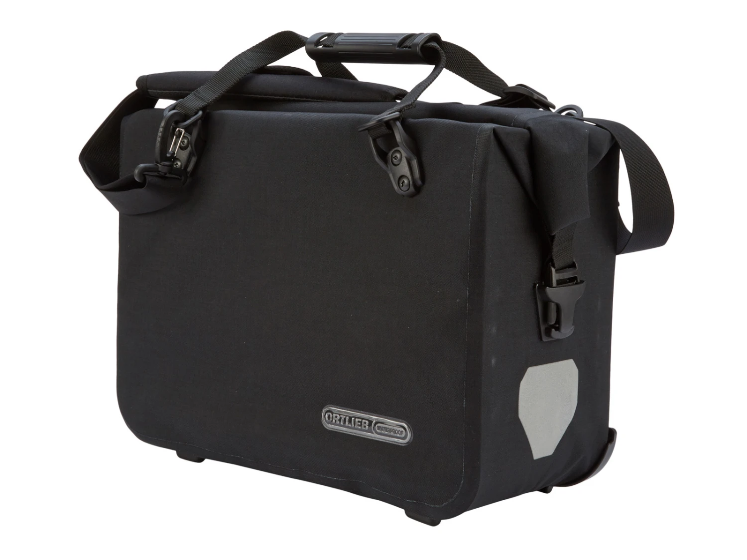 Denna Ortlieb Officebag är en axelväska som kan monteras på cykeln. Väskan har en kapacitet på 21 liter och är producerad i det slittåliga PU coated condura. Cykelväskan är enkel att klicka av och på pakethållaren. Axelväskan innehåller ett stort huvudfack, med plats till dator, dokument etc.
