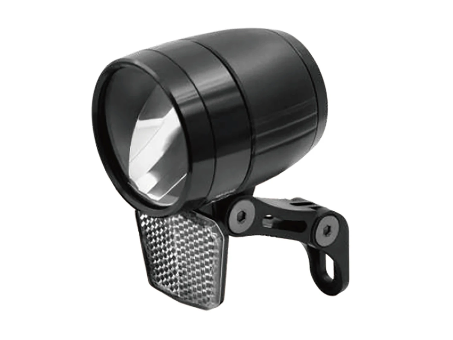 Denna E-street-strålkastare från OXC är lämplig för användning på E-cyklar, där den är ansluten till cykelns batterisystem.