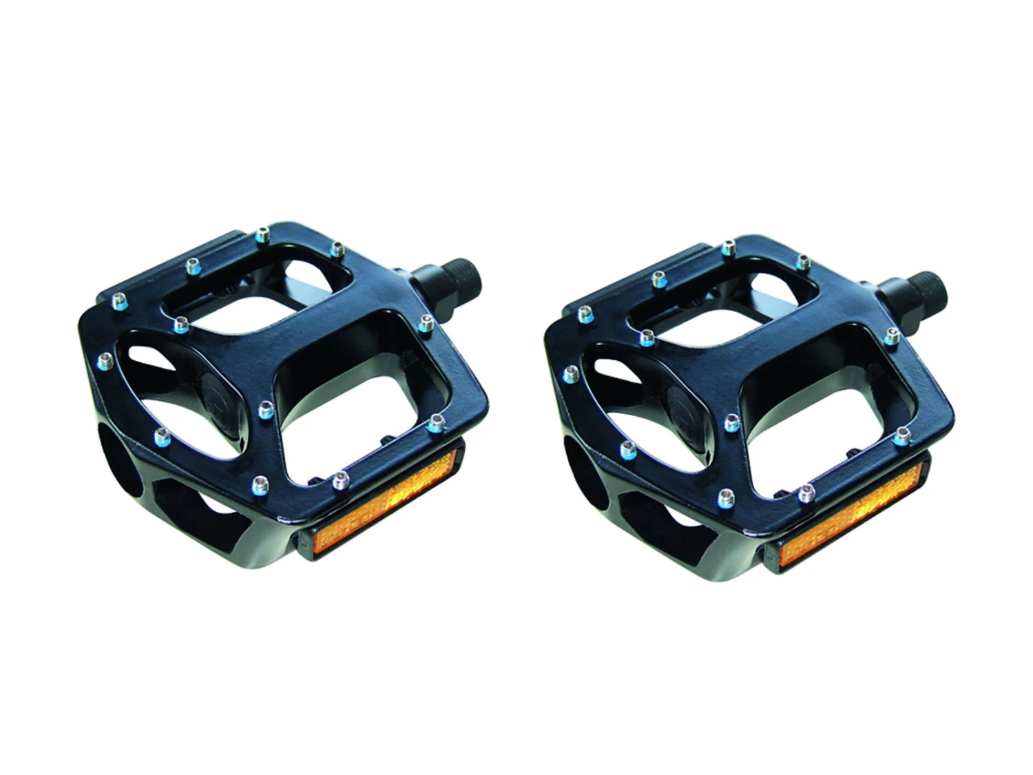 Här erbjuds en plattformspedal i aluminium från Shimano med utbytbara stift. Cr-Mo axel 9/16 hittades. En riktigt bra och stark BMX- eller MTB-plattformspedal med härdat stålaxel i svart. Kroppen är i aluminium och gjuten i ett stycke med stift.
