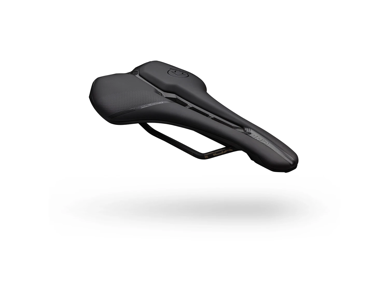 Denna PRO Falcon-sadel har en formgjuten kolbas och är utformad med en platt bakre del för att ge en mer stabil position och därmed underlättar förmågan att röra sig framåt eller tillbaka på sadeln.