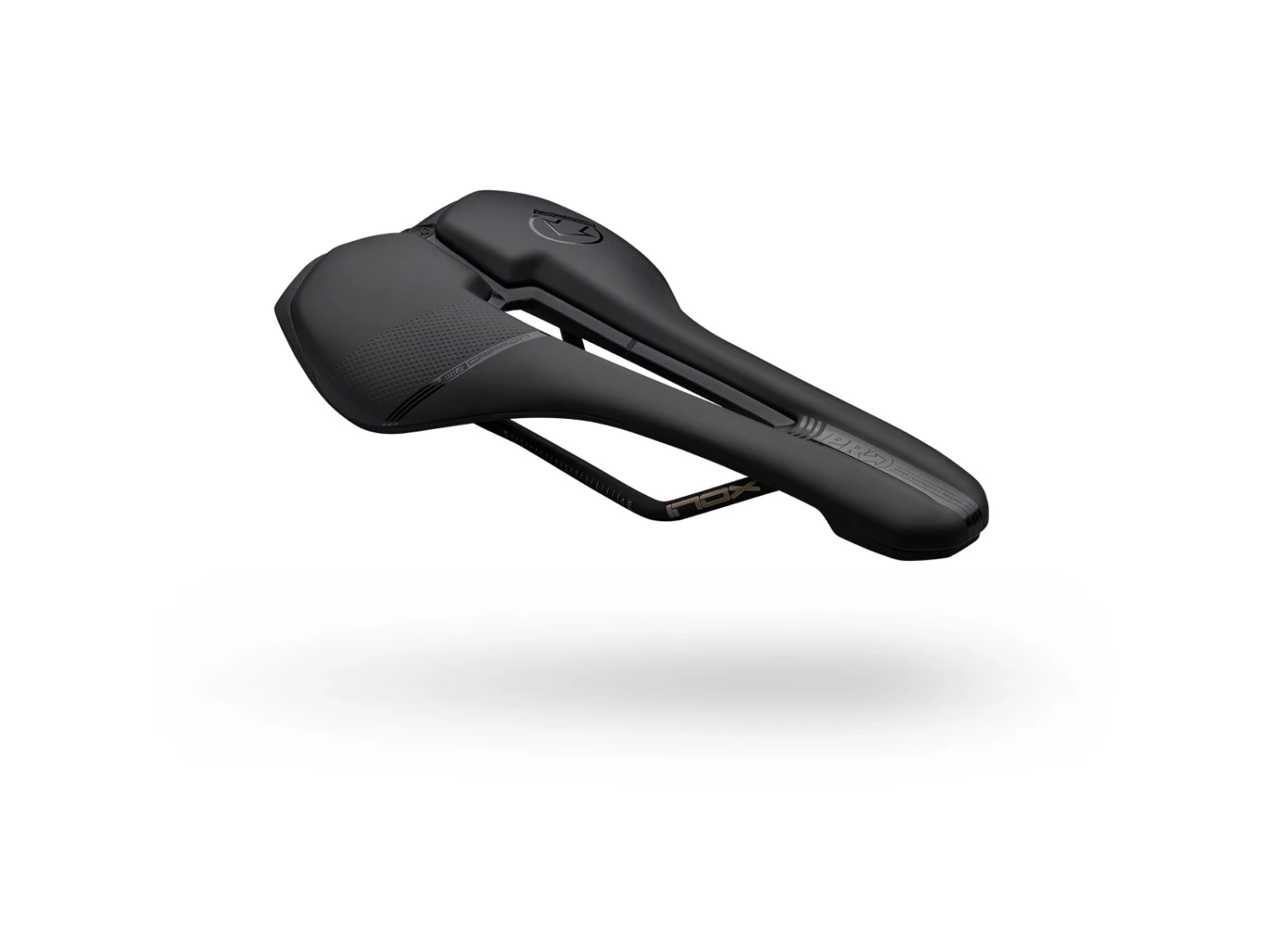 Denna PRO Griffon-sadel riktar sig till de mindre flexibla cyklisterna och är byggd på en kolbas och rälsstänger.