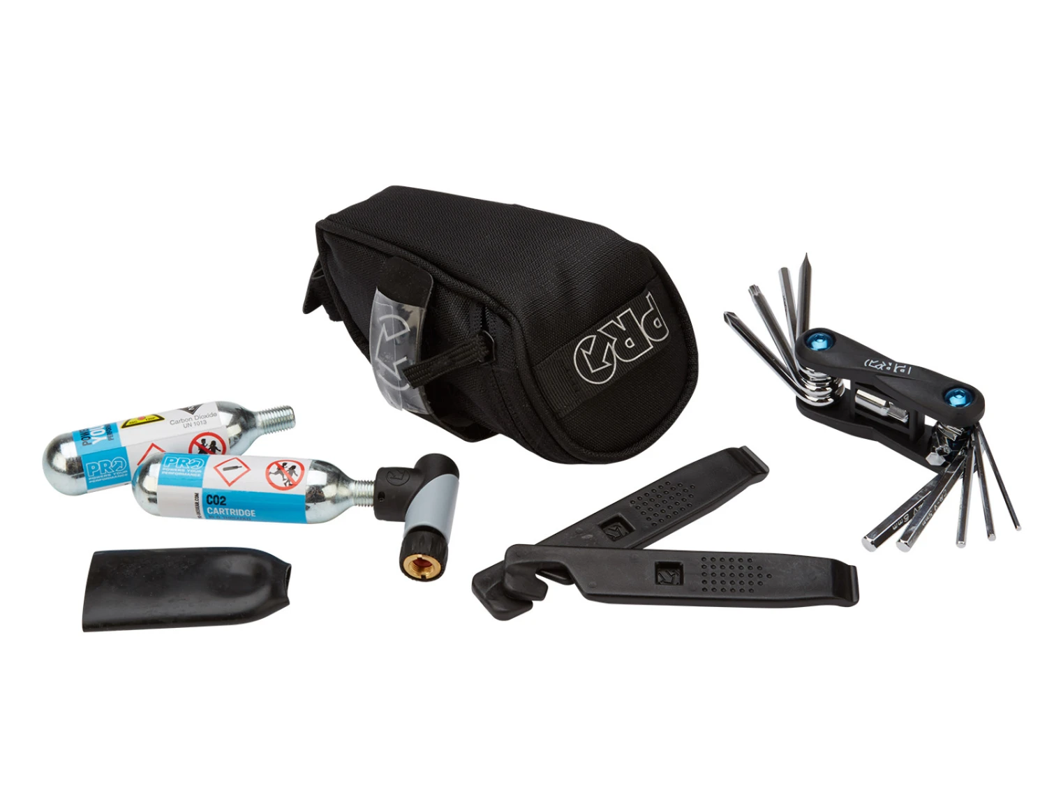Detta kombipack från PRO är skapad till dig som har en racercykel. I paketet kan du bl.a. hitta ett mini-verktyg med 8 funktioner. Mini-verktyget är lätt och kompakt och verktyget har en storlek 2,3,4,5 och 6 insexnyckel samt en skruvmejsel och en stjärnskruvmejsel. En Co2 minipump samt två 16g Co2 patroner medföljer. Utöver detta så består PROs kombipack av ett däckjärn och en sadelväska.