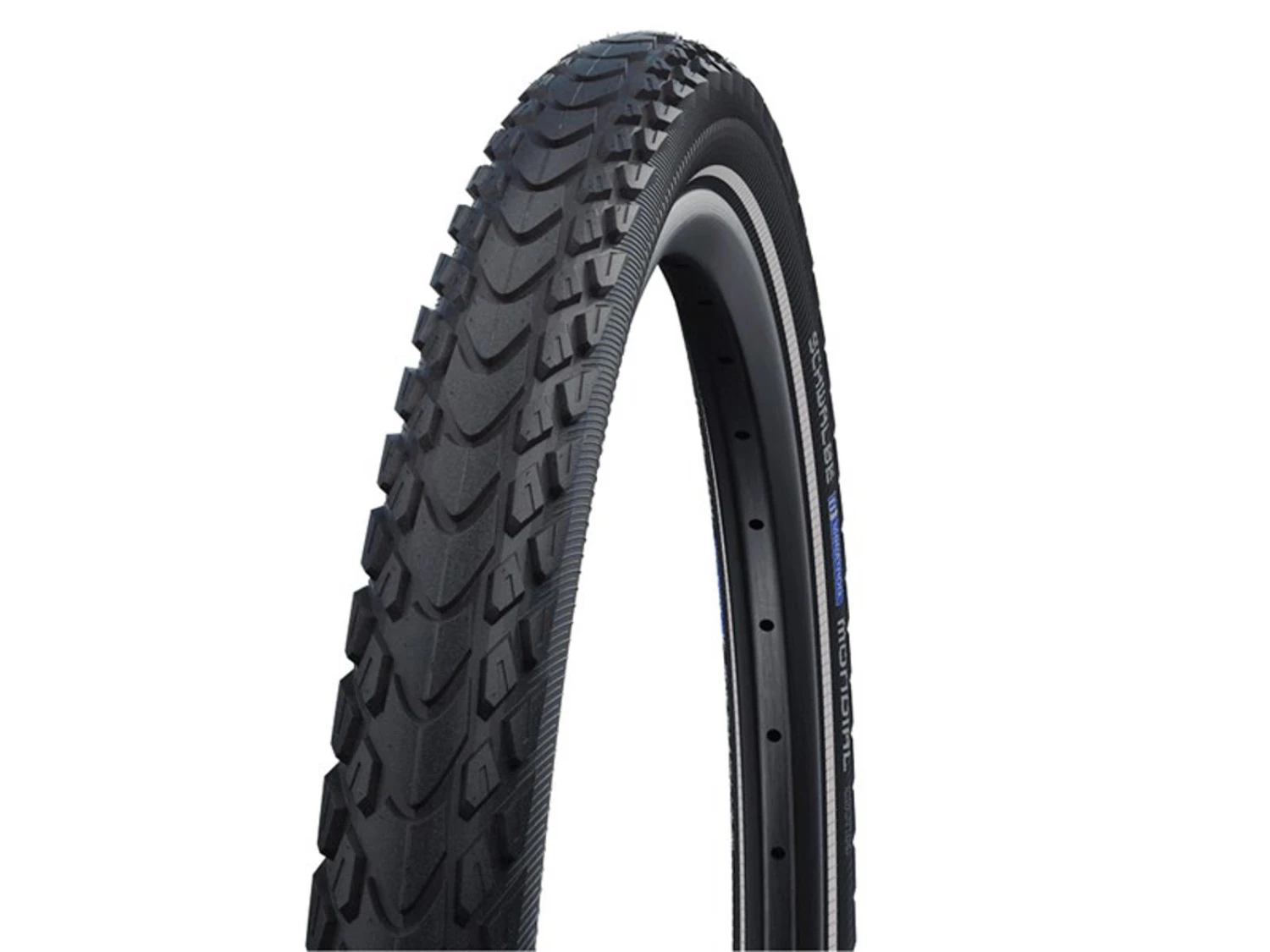 Evolution Line-versionen från Schwalbe är det ultimata däcket för daglig användning, oavsett om det är på vanliga cyklar eller elcyklar. Däck är konstruerat för användning på hårda ytor, spår eller stigar. Som ett punkteringsskydd kombineras däcket med V-Guard och Double Defense-teknik, vilket ger ett bra punkteringsskydd och en extremt stark konstruktion. Däckets gummiblandning är Travel Star, som är den perfekta blandningen för allroundkörning, liksom för långa cykelturer. Som extra säkerhet är däcket täckt med ett reflekterande band på båda sidorna av däcket.