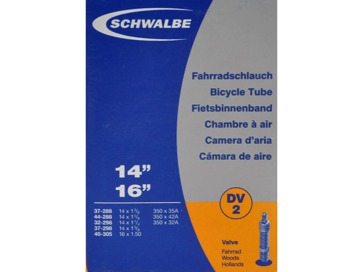 Schwalbe slang av högsta kvalitet. Dunlop-ventil 32 mm lång. Slang till cyklar, barnvagnar m.m.