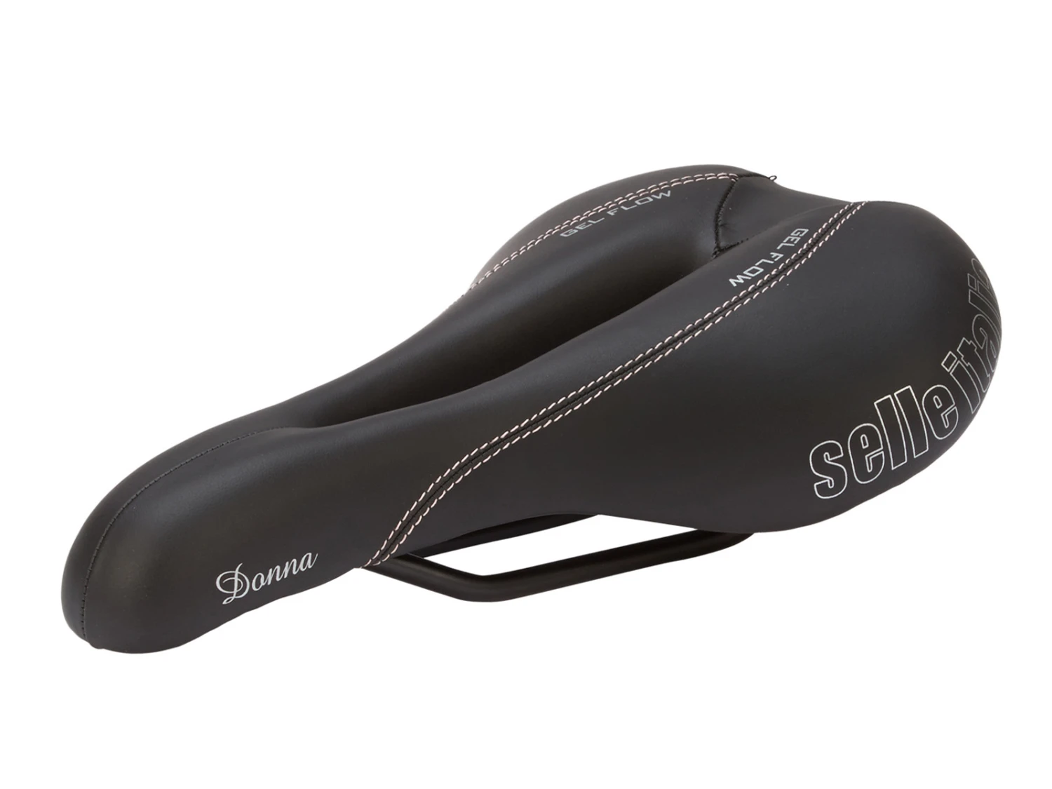 Denna Lady Donna Saddle från Selle Italia är utformad för att ge kvinnliga cyklister optimal komfort och ergonomi. Sadeln är utformad efter den kvinnliga kroppen och har således en högre komfort än liknande konkurrenter. Lady Donna-sadeln från Selle Italia är utvecklad i en sportig design och vänder sig till både nybörjare och lätt tränad cyklist.