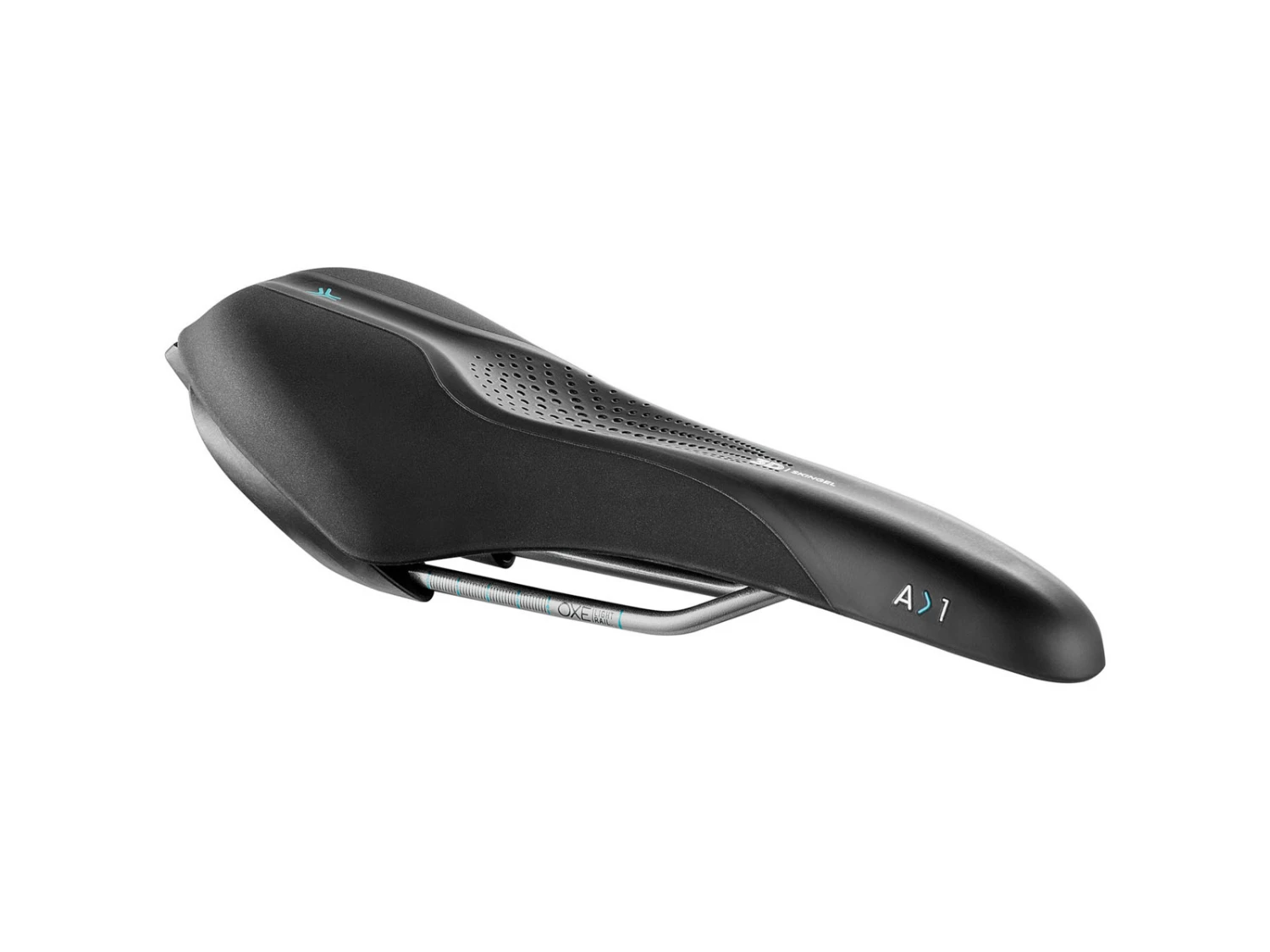 Denna Scientia-sadel från Selle Royal är designad för cyklister som vill ha en atletisk ridposition och som rider långa sträckor. Sadelpolstret är avancerad 3D Skingel och har en central behållare som lindrar trycket mot bäckenbotten. Sadelns smala anatomiska design ger god pedalkomfort som tillsammans med Curva Suspension ger god absorption och stabila köregenskaper. Strukturen på sadeln är gjord på ett avstånd av 11 cm. eller mindre mellan våra sittben, och för de cyklister som vill sitta i en körposition på 45 0 . Sadeln är utrustad med ett ICS-klicksystem där en sadelväska eller en cykellampa kan monteras, som snabbt kan tas bort eller slås på.