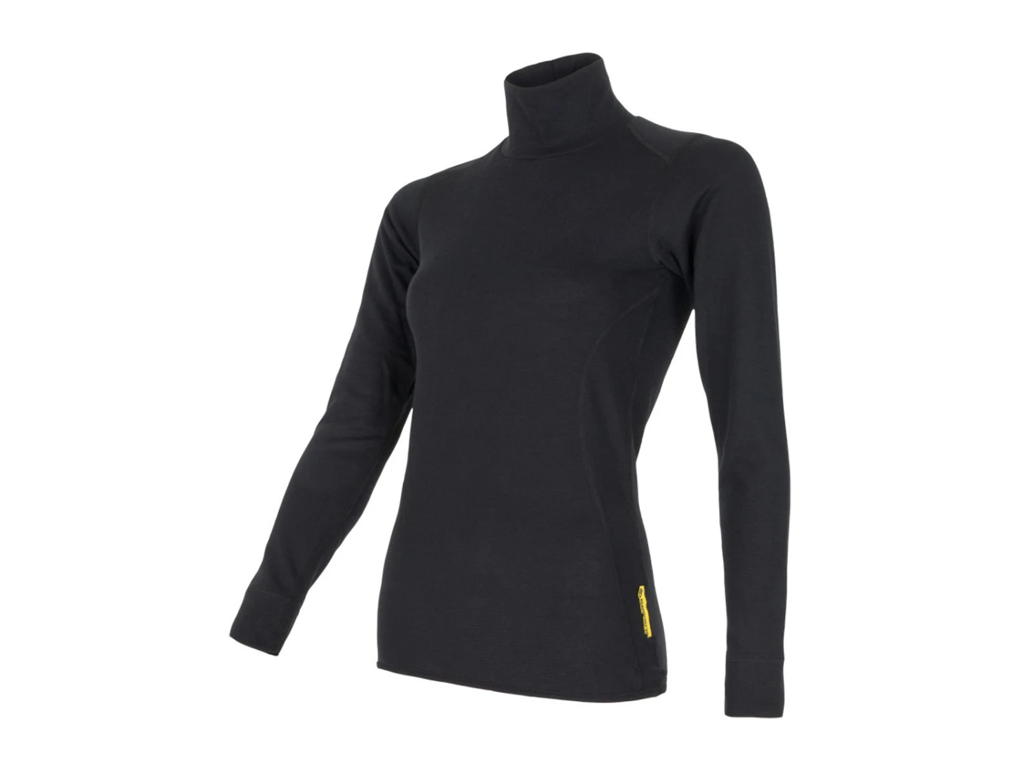 Damtröja med rullkrage för kvinnor. Undertröjan är från Sensor och är en tvåsidig tröja tillverkad med en minussida, plus en plussida. Det vill säga när skjortan vänds får den nya funktioner och detaljer. Trots det vändbara alternativet innehåller tröjan ett anatomiskt snitt för att säkerställa att passformen hålls i sittläge. Svettundertröjan kan användas som det inre lagret och är bra för aktiviteter med hög puls där det är bekvämt med en hög krage.