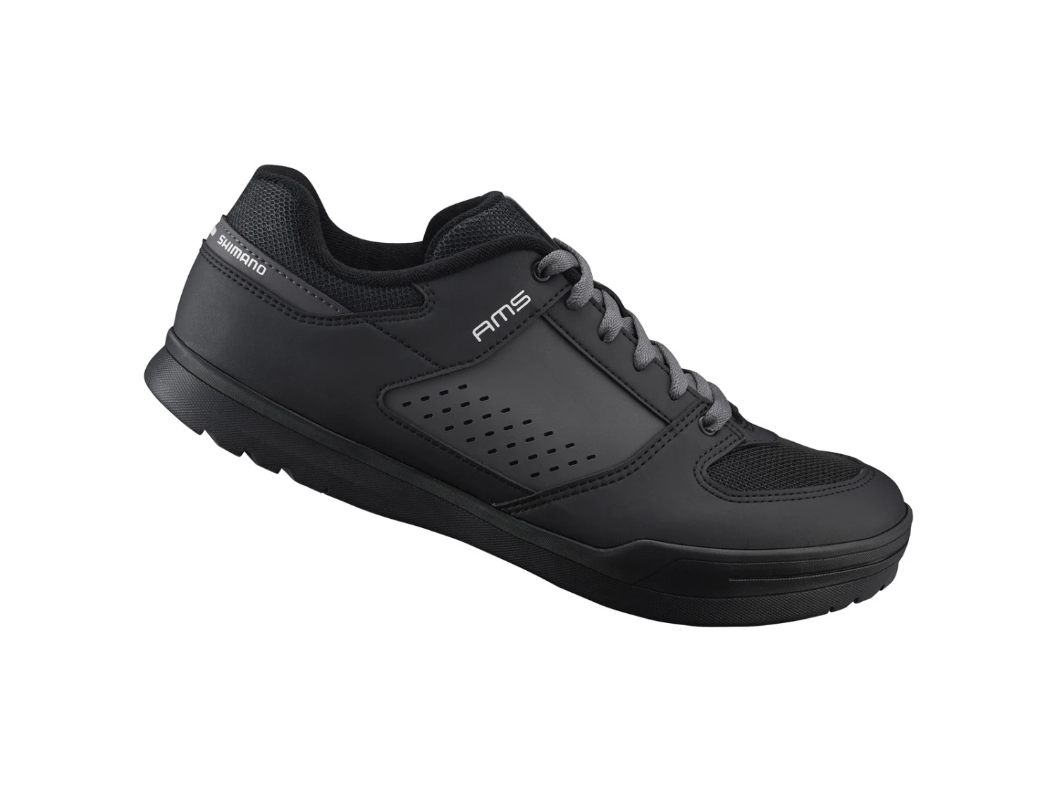 Shimano AM501 Gravity SPD-skor för alla åkare. En klassisk downhillsko designad för helgens äventyrare som vill ha känslan av kontroll som medföljer SPD-kläderna. Med spetsstängningen är skorna snygga och bekväma både på cykeln och när du behöver gå av och gå. Skon är utformad för att ge oöverträffad support och stabilitet för alla ryttare som kan åka snabba nedförspår året runt med denna sko. Skon har en avslappnad stil och snäv passform som, förutom snören, har en enda säker kardborrstängning som ger en snäv passform utan att trycka. Den övre är tillverkad i syntetiskt läder, som är robust på utsidan, men mjukt på insidan, för komfort, hållbarhet och motståndskraft mot vind och väder. Under varma förhållanden hjälper strategiskt placerade nätpaneler att kyla foten, så att du är redo för allt som dagen erbjuder. Gummisulan säkerställer ett högt grepp när man går i skon.