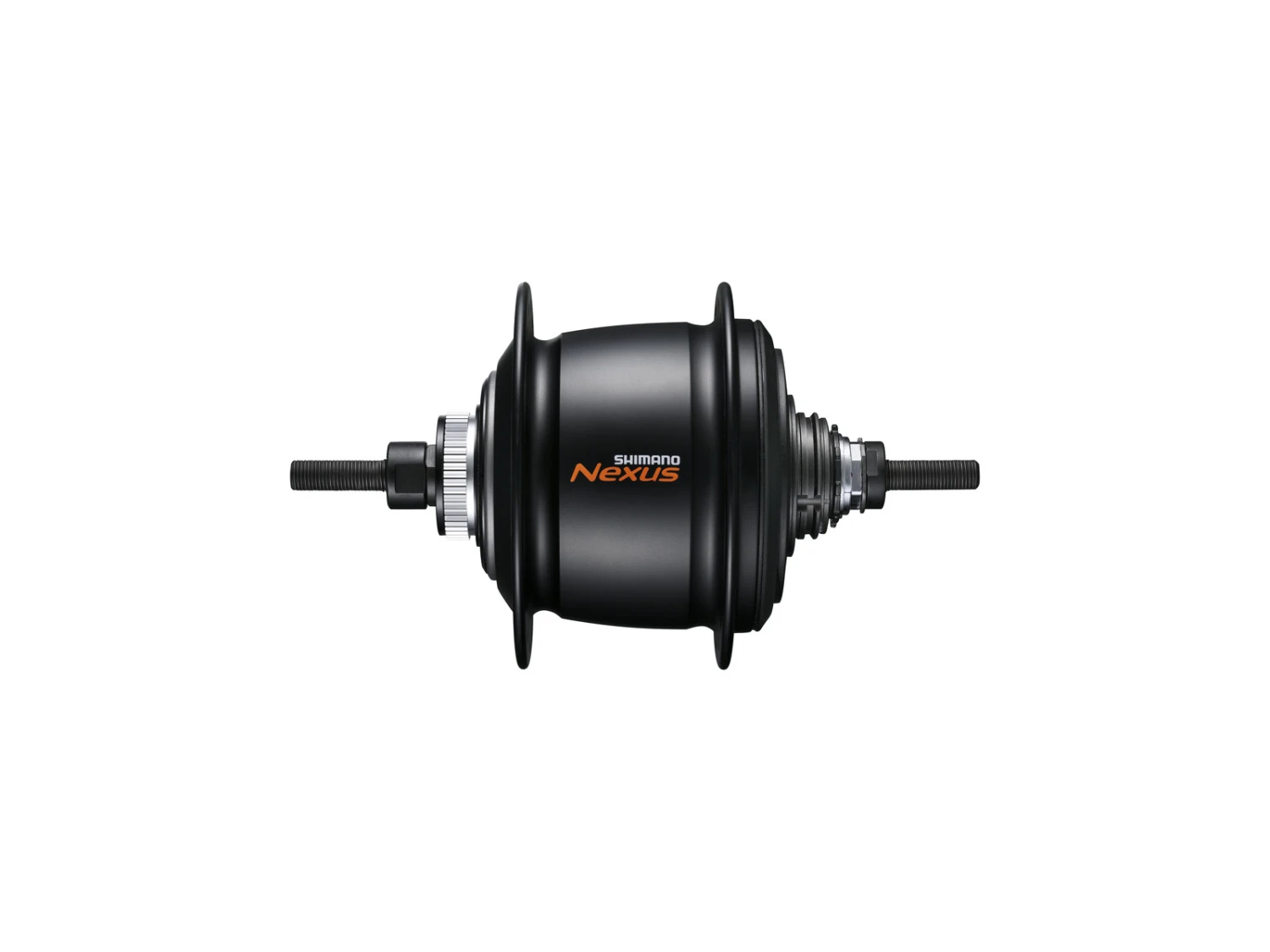 Shimano Nexus baknav med 8 växlar och avsedd för skivbromsrotor med mittlås. Navet används för vanliga cyklar eftersom du behöver det för daglig användning. Interna kugghjul kräver mindre underhåll och är också enkla att montera kugghjulet på, eftersom det är en bra spridning mellan dem.
