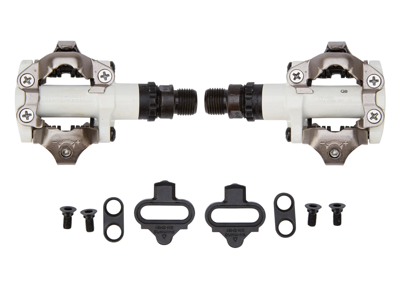 Simano PD-M520 pedal med dubbelt klick-system. Pedalen är designad så man undviker att för mycket lera m.m. sätter sig fast i pedalen. Pedalens bindningar, där klossarna klickas i, kan justeras så man själv bestämmer hur stramt det är att få skorna fria från dem igen.
