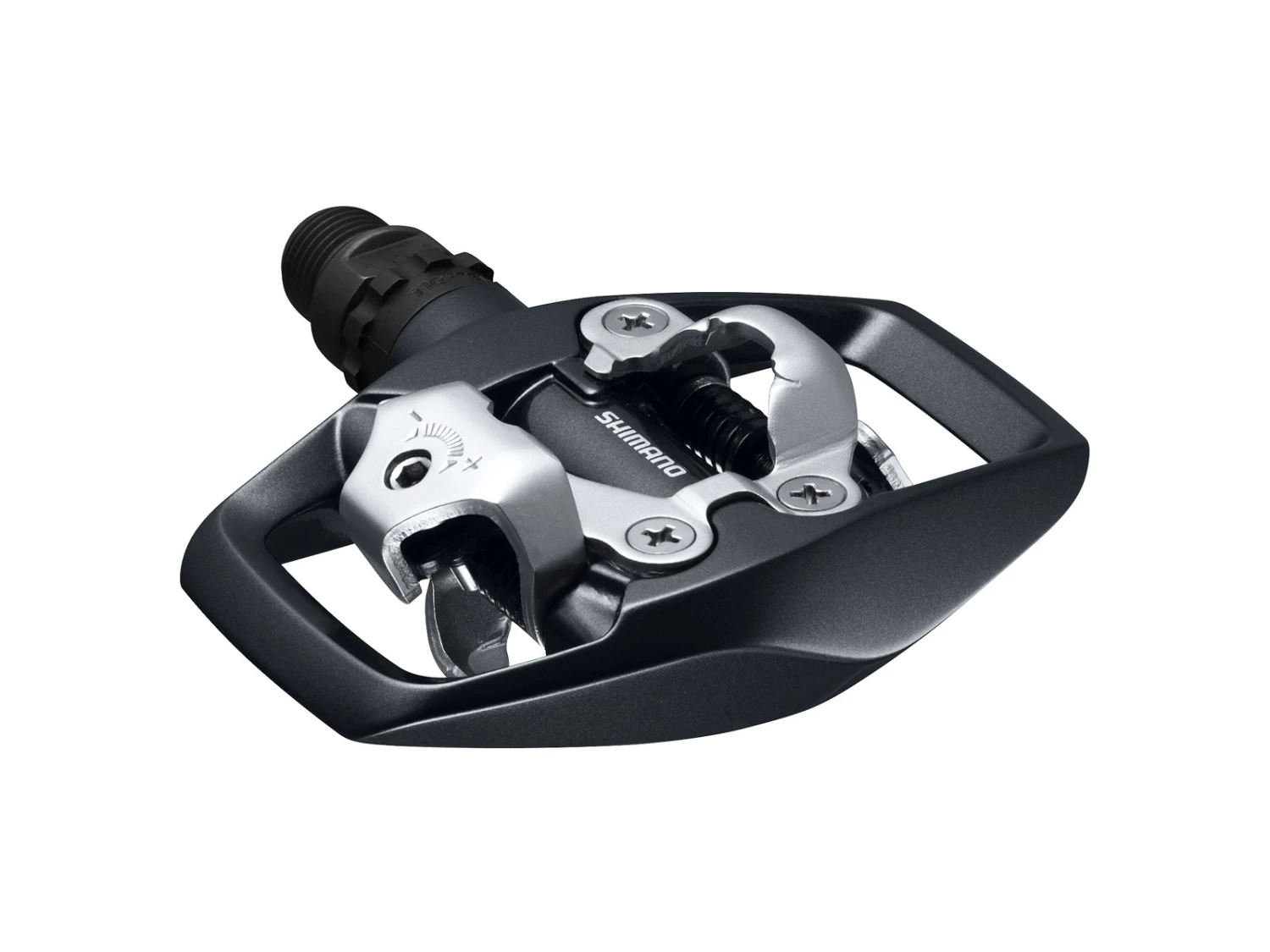 Denna Shimano PD-M500 pedal i svart är utvecklad till din som inte vill vara för hårt fastspänd i pedalen. Därför är denna modell utvecklad med en fjäderspänning som är lättare än på andra liknande pedaler. Utöver detta är pedalen utrustad med dubbelt klick-system. PD-M500 är skapad till landsvägscykling och har därför en stor trampyta. Pedalens bindningar (där klossarna klickas i) är justerbara, så du själv kan bestämma hur stramt det ska vara att få skorna fria igen. Resultaten är en mycket användarvänlig och pålitlig pedal. Vi rekommenderar denna pedal till dem som söker en pedal från den mellersta kvalitetssteget och vill prova de fördelar som klick-pedaler ger.