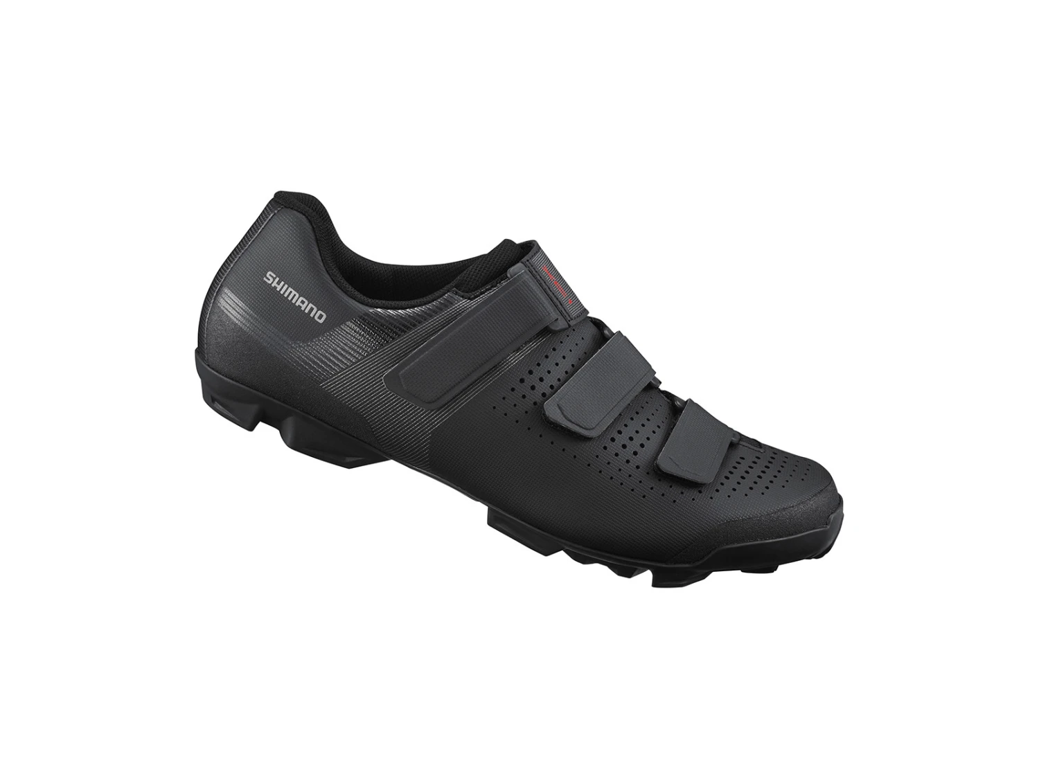 Denna XC1 MTB-sko från Shimano är speciellt designad för män. Skon är av perforerat kompositmaterial av syntetläder, vilket ger en överlägsen passform och andningsförmåga. Skon stängs med 3 kardborreband som är fördelade så att de ger en jämnt fördelad spänning över foten. Den speciella off-set placeringen av remmarna lindrar också spänningar vid fotens fotled. Skonens övre del är gjord som ett surroundomslag, vilket minskar överlappningar och ger en bekväm och bekväm passform för dina fötter. För att ge en hög kraftöverföring är sulan tillverkad i lätt fiberförstärkt nylon, som tillsammans med gummi XC racing yttersula främjar stabilitet vid trampning och ger en bra känsla när du går.