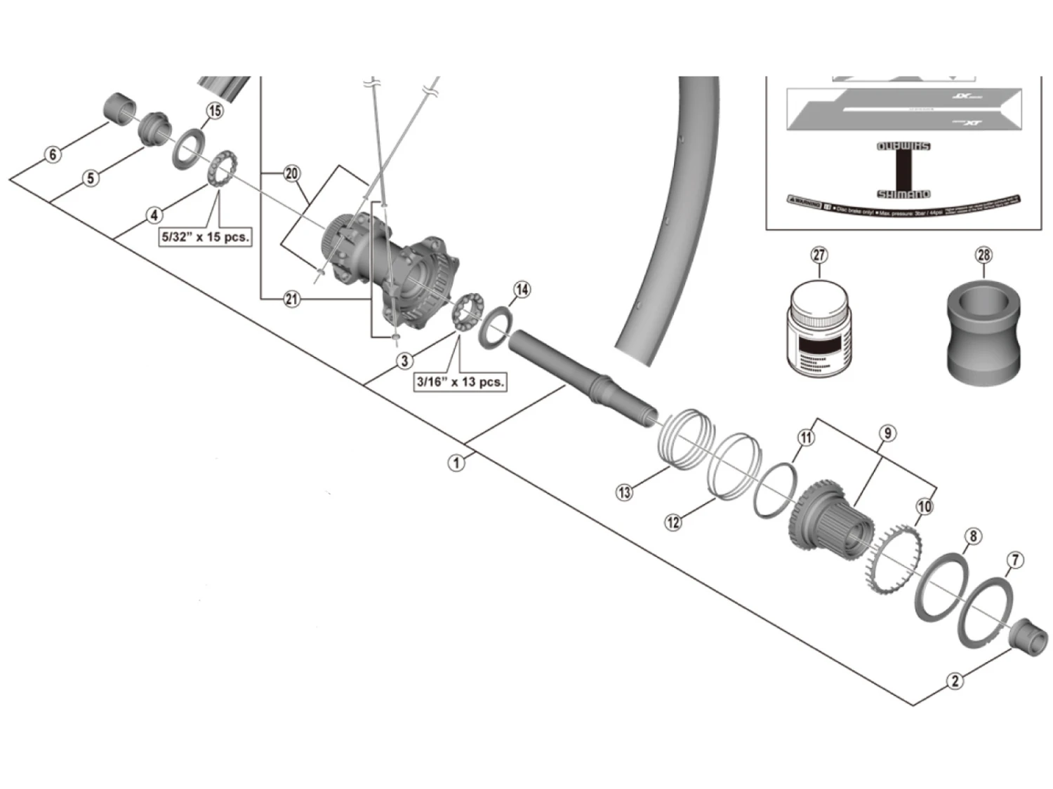 Denna axeluppsättning är komplett med kon. Satsen är lämplig för användning på Shimano XT bakhjul modell WH-M8100-B och axellängden är 148 mm.