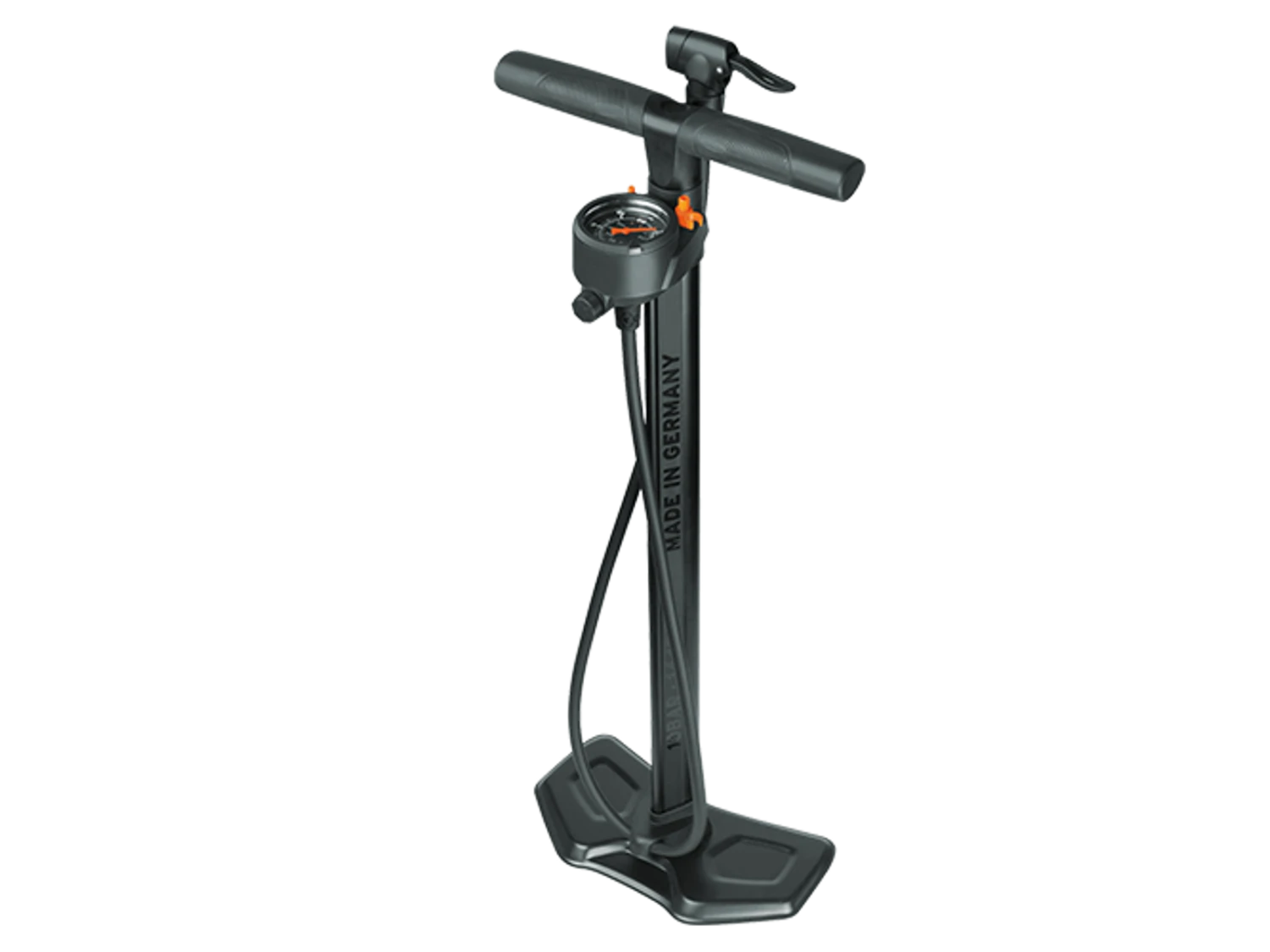 SKS AirWorx Plus 10.0 är en cykelpump som lyfter dina däck och ditt humör. Den svarta färgen och mjuka greppen skapar en snygg kombination av metall och plast som passar alla cyklar. Kompatibel med AV-, SV- och DV-ventiler och en maximal effekt på 10 bar / 144 PSI. Denna pump gör det enkelt att hålla optimalt tryck i dina däck. Med en höjd på 730 mm är den dessutom ergonomiskt korrekt att använda.
